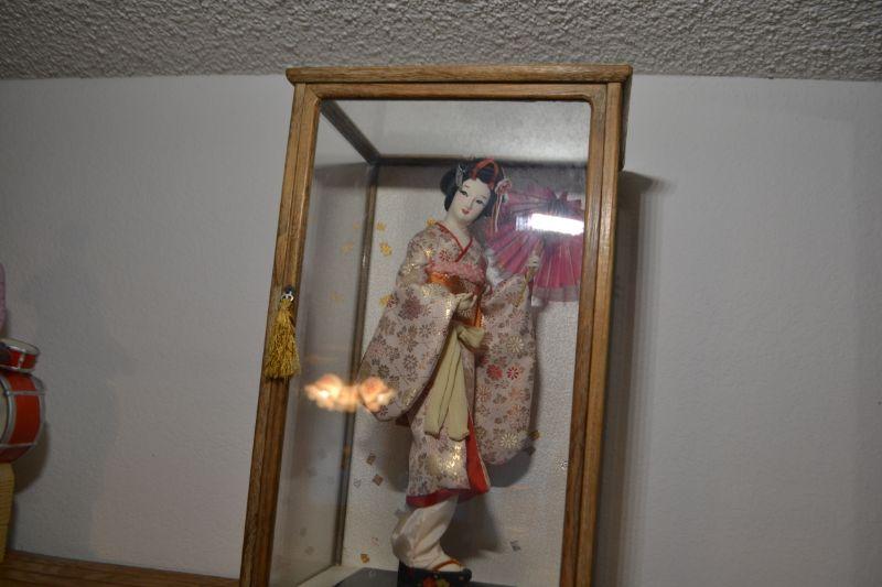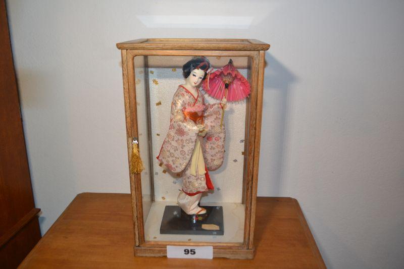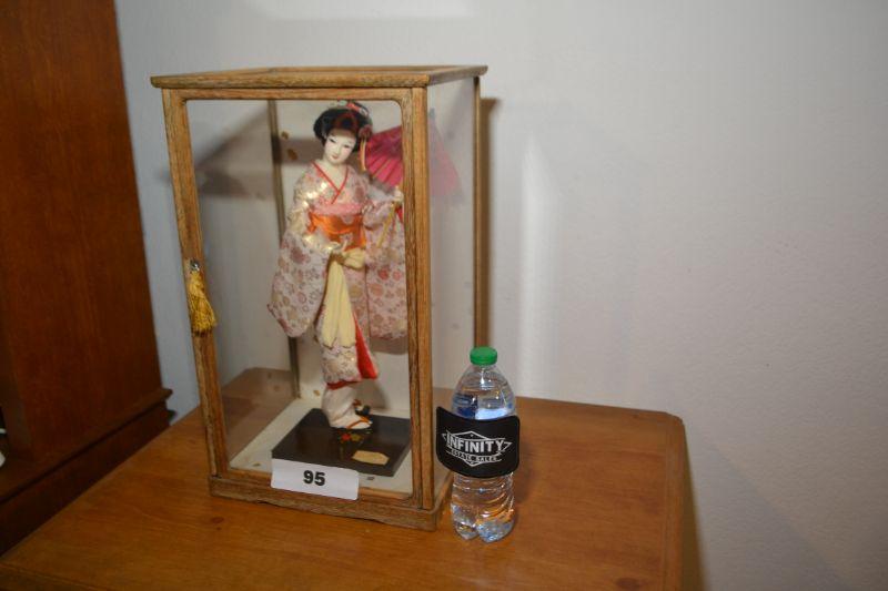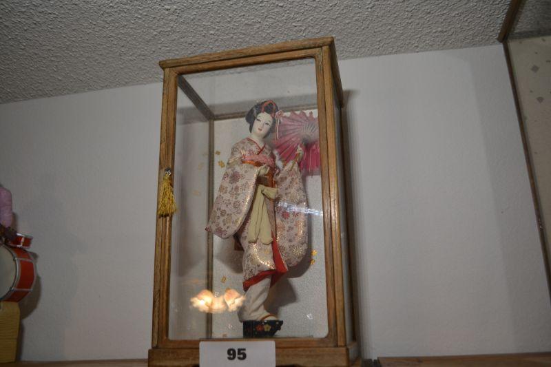 LOT 95 VINTAGE JAPANESE DOLL IN GLASS DISPLAY CASE