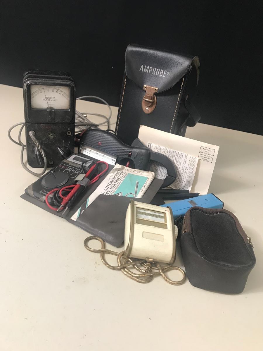 Vintage Meters, Gadgets & Gizmos. Multimeter, Clamp-on Amp meter, light meter and more! All untested. Please see all pictures as they are the best representation of the items. The pictures show condition, measurements if taken, and what is included in the lot. Due to the large amount that we photograph and the time frame, we are not always able to take measurements. All items unless noted, are pre-owned and have been used. If you purchased furniture, you must bring help. We do not allow one person to carry large furniture out on their own. Bring help, tools and a truck for the safety of our client’s homes, and your personal safety. Company policy. Thank you.