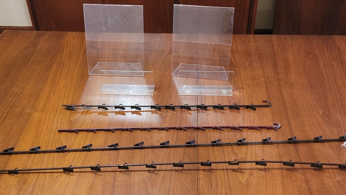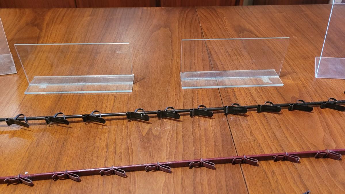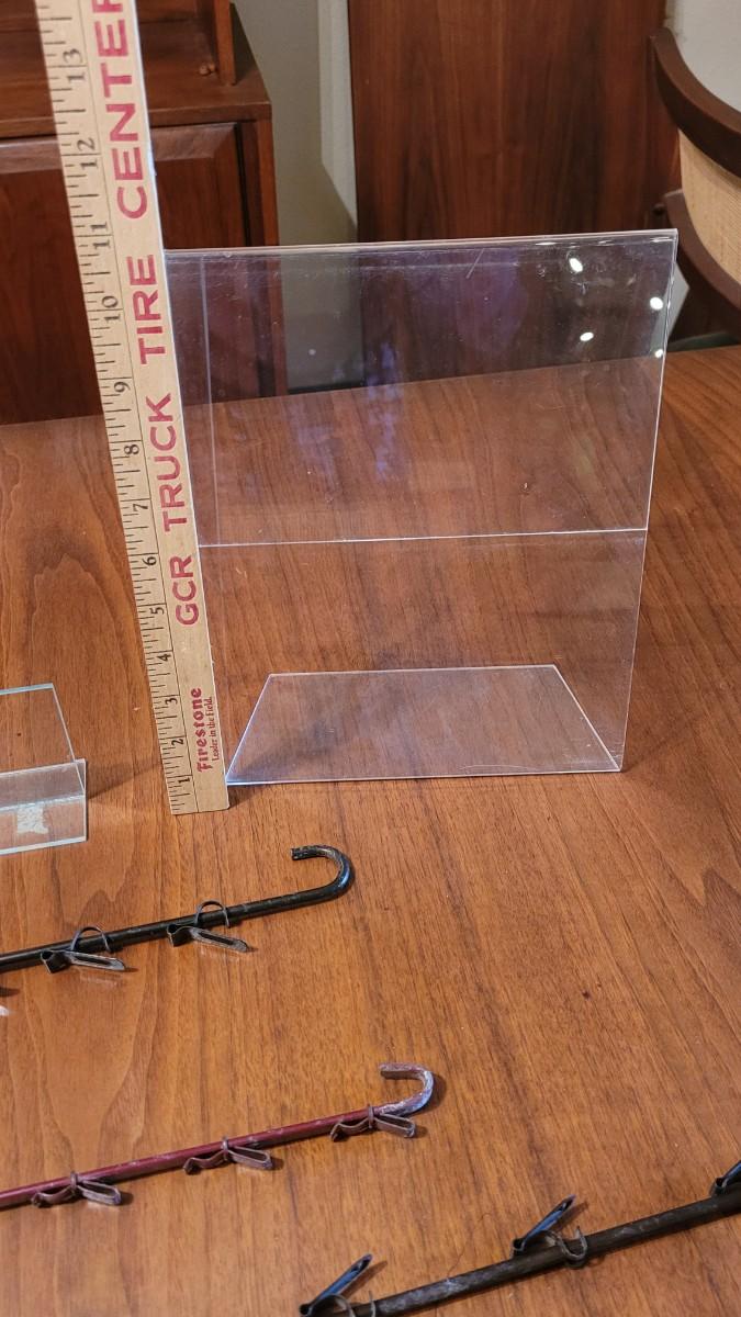 Lot 90: (4) Clip On Displays and Clear Acrylic Displays (2) Tall (2) Small