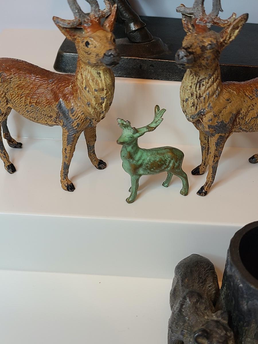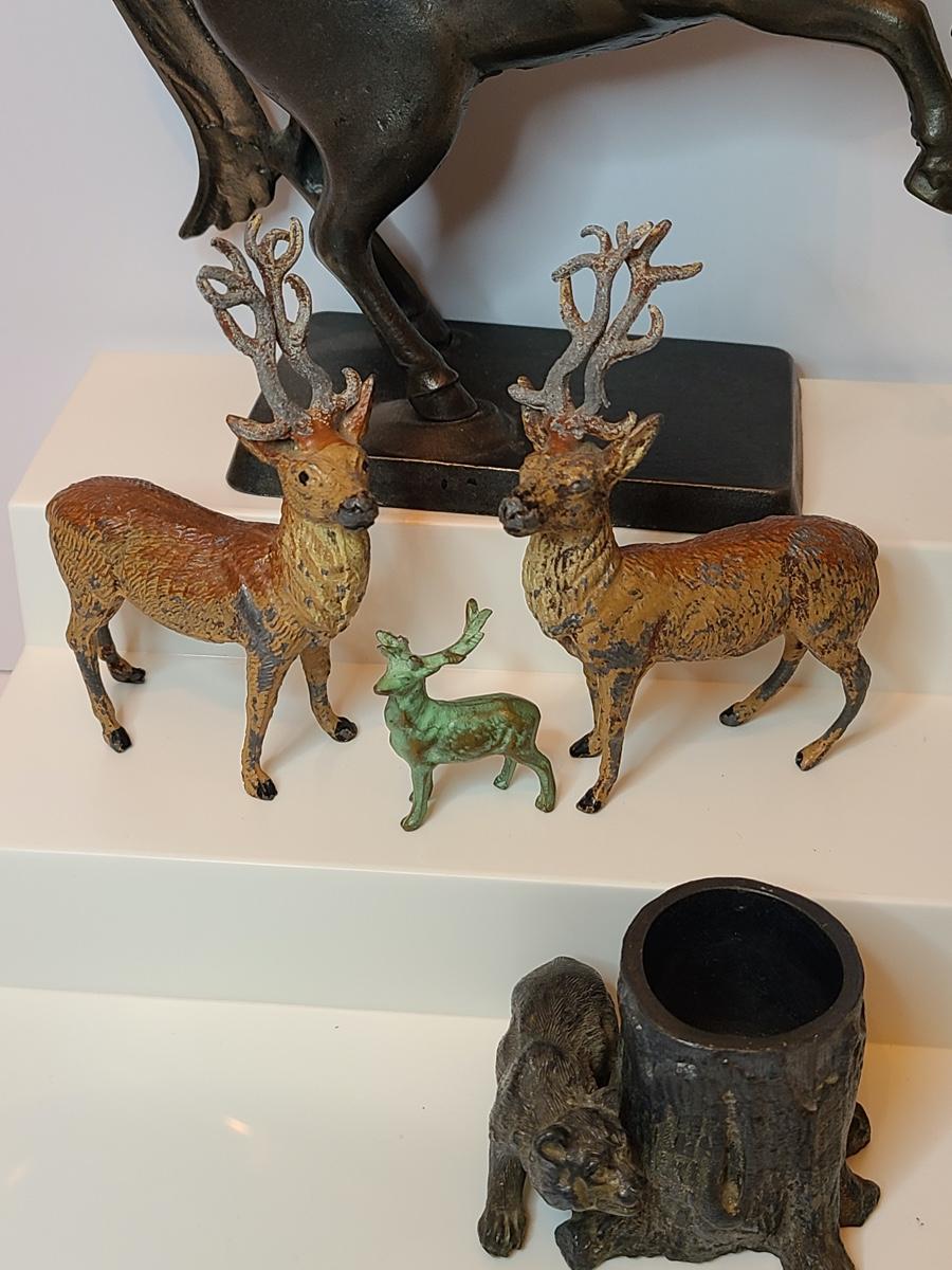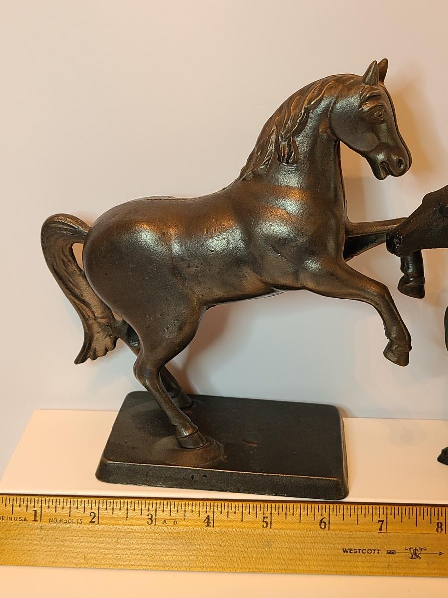 Two metal horse banks, and small metal as-found collectibles. Please see all pictures as they are the best representation of the items. The pictures show condition, measurements if taken, and what is included in the lot. Due to the large amount that we photograph and the time frame, we are not always able to take measurements. All items unless noted, are pre-owned and have been used. If you purchased furniture, you must bring help. We do not allow one person to carry large furniture out on their own. Bring help, tools and a truck for the safety of our client’s homes, and your personal safety. Company policy. Thank you.