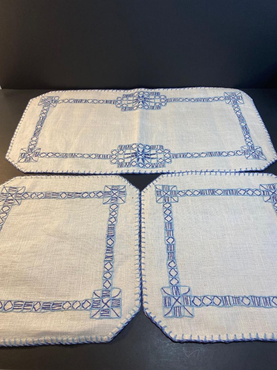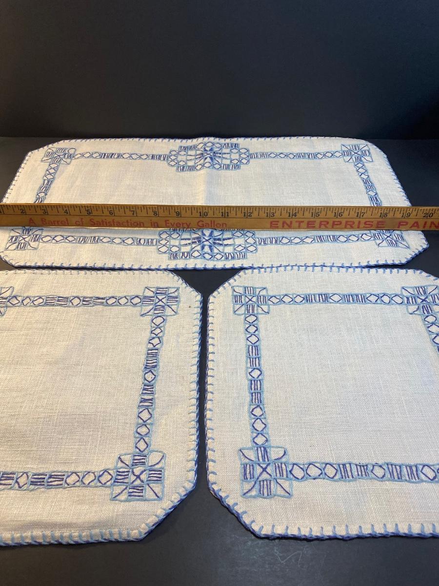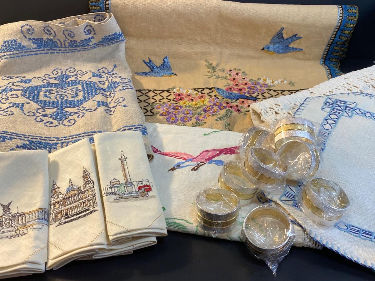 Beautiful vintage embroidered table runners, placemats, napkins and napkin rings. Please see all pictures as they are the best representation of the items. The pictures show condition, measurements if taken, and what is included in the lot. Due to the large amount that we photograph and the time frame, we are not always able to take measurements. All items unless noted, are pre-owned and have been used. If you purchased furniture, you must bring help. We do not allow one person to carry large furniture out on their own. Bring help, tools and a truck for the safety of our client’s homes, and your personal safety. Company policy. Thank you.