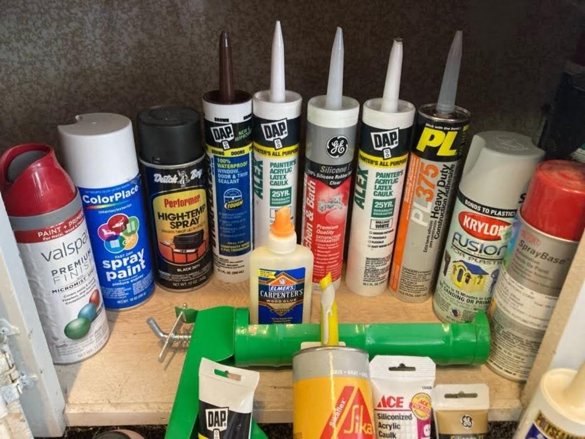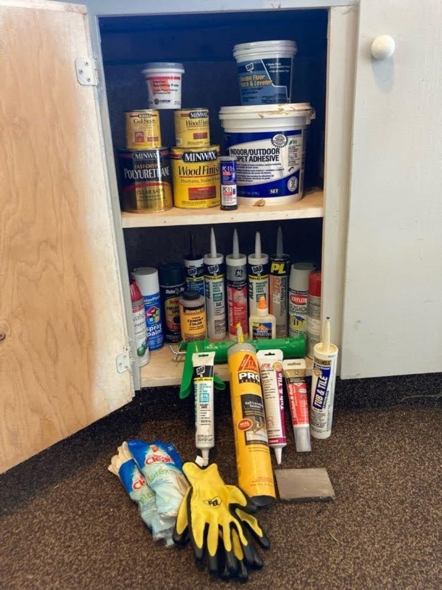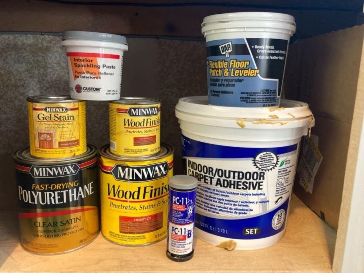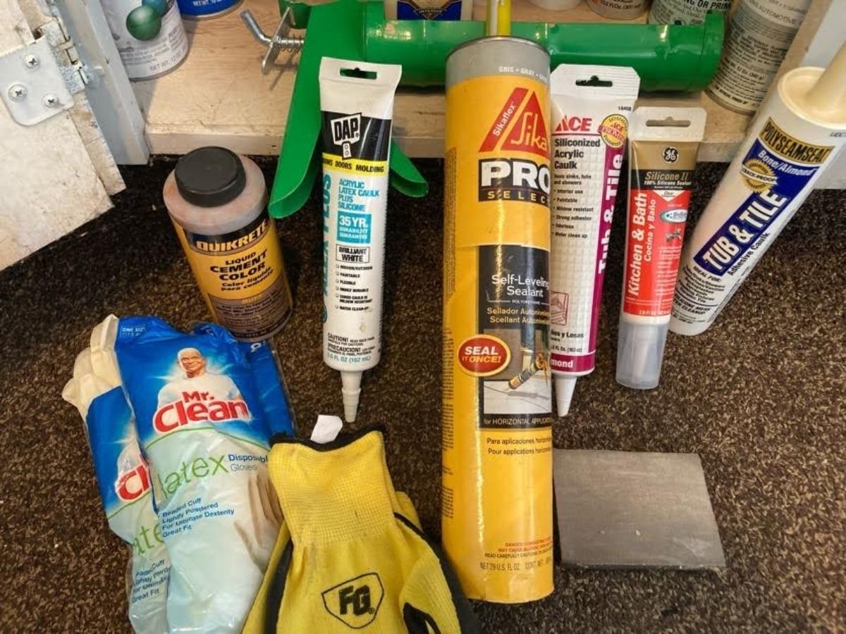 LOT 95 CAULKING, STAINS, LATEX GLOVES AND MORE
