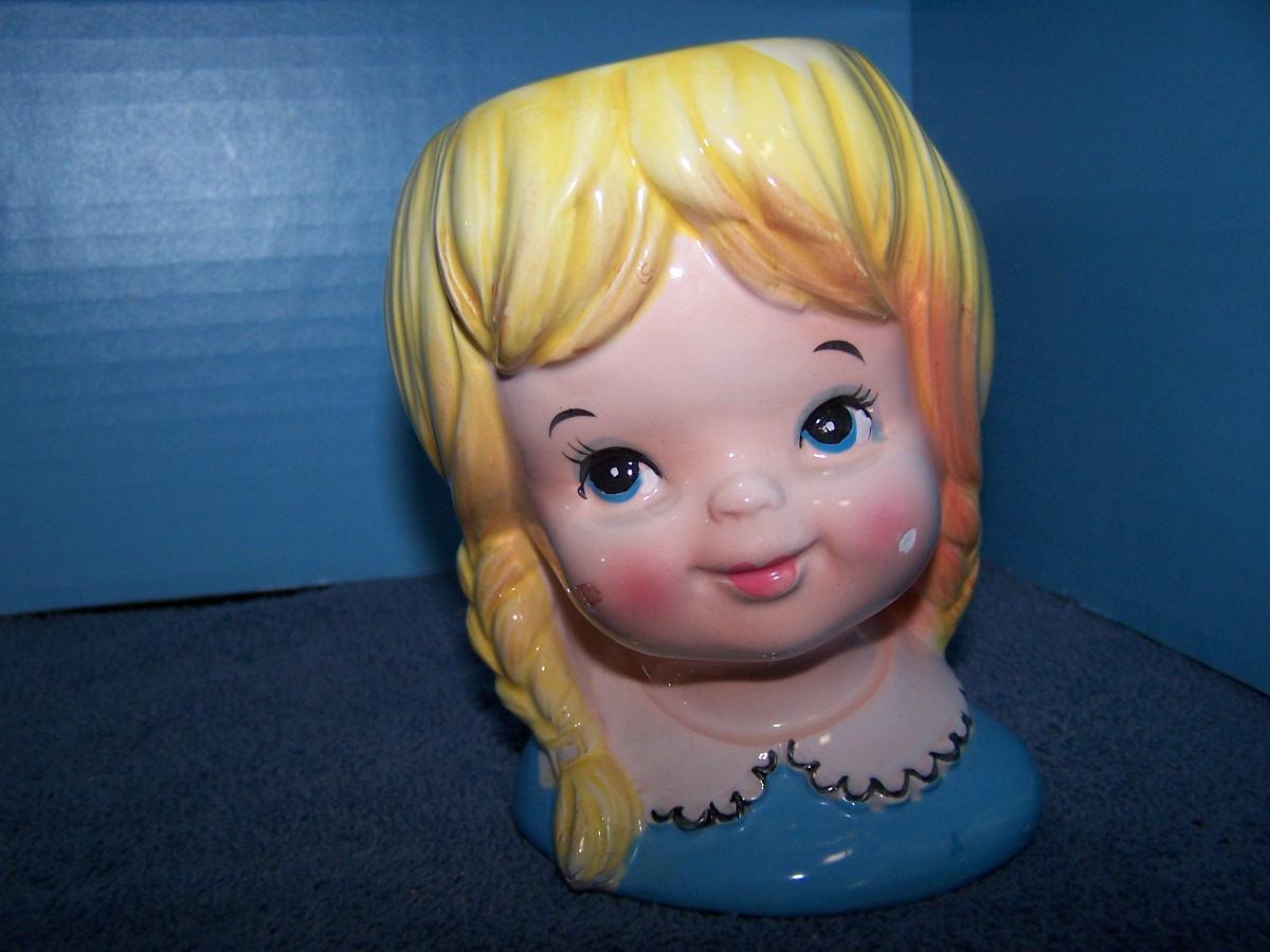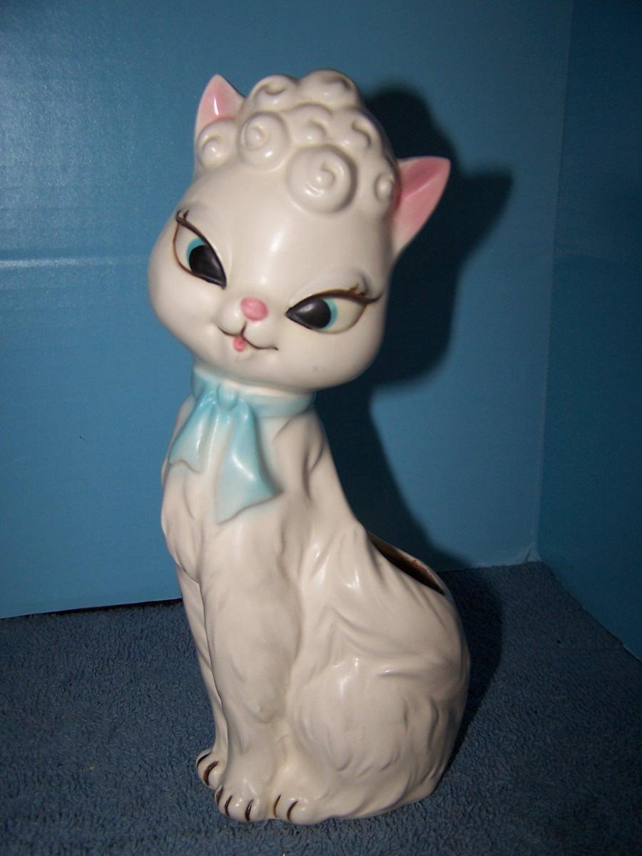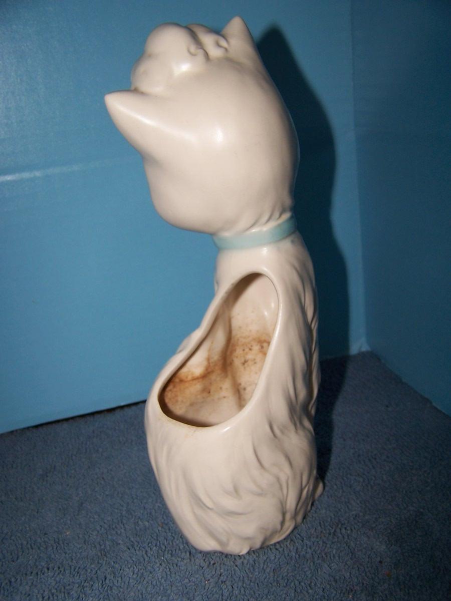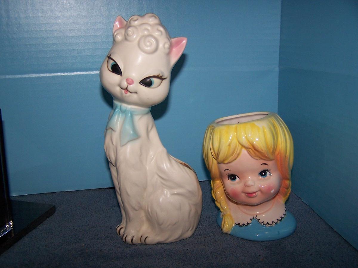 THESE ARE ADORABLE VINTAGE MCM CAT PLANTER & HEAD VASE!!! UNMARKED... CAT IS 9'' TALL... LIGHT WEAR... HEAD VASE HAS SEVERAL FLAKES...