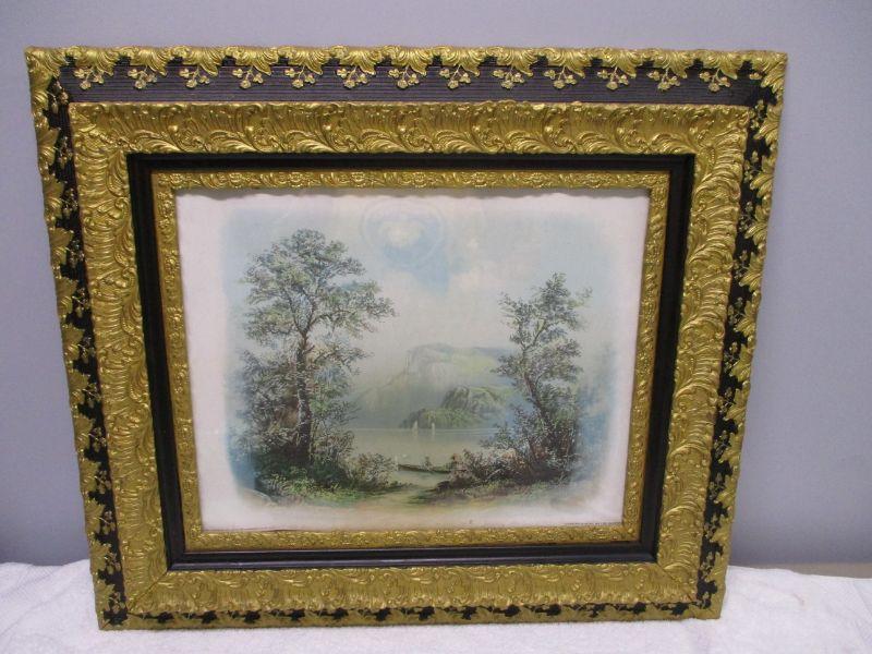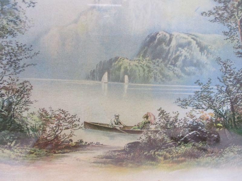 Lot 95 - Antique Victorian Framed Print - Lovers In Canoe