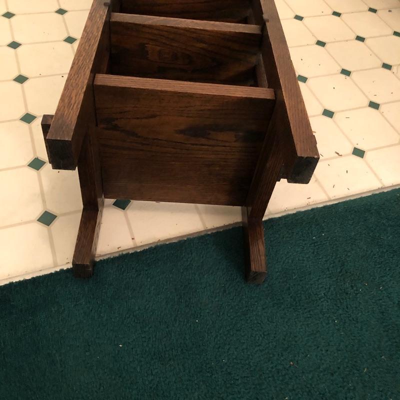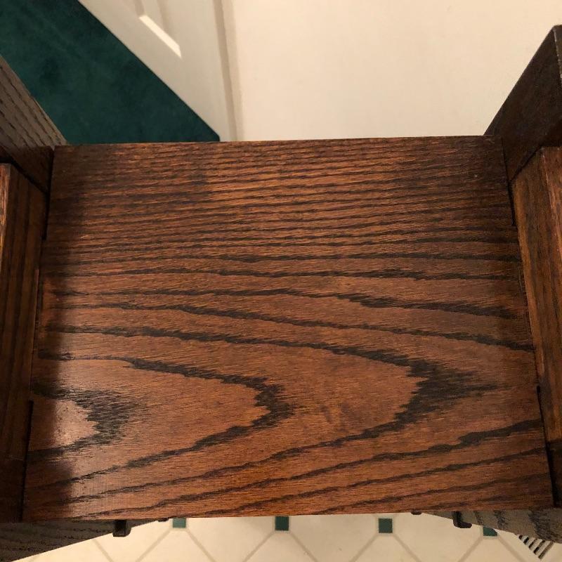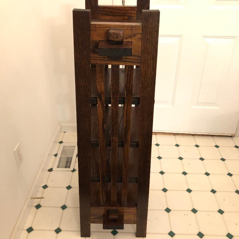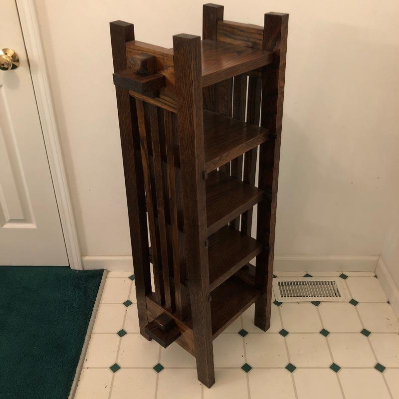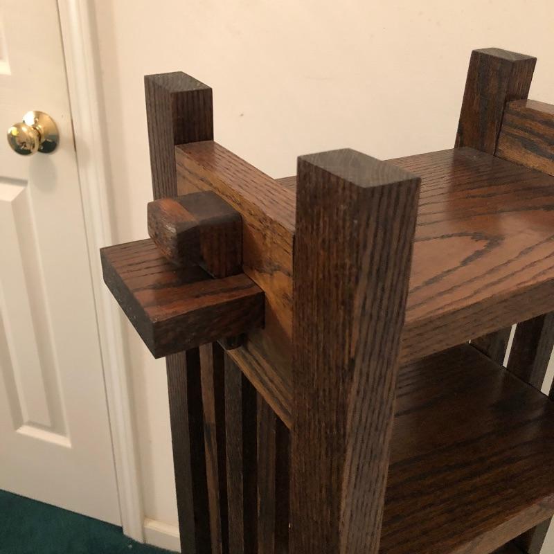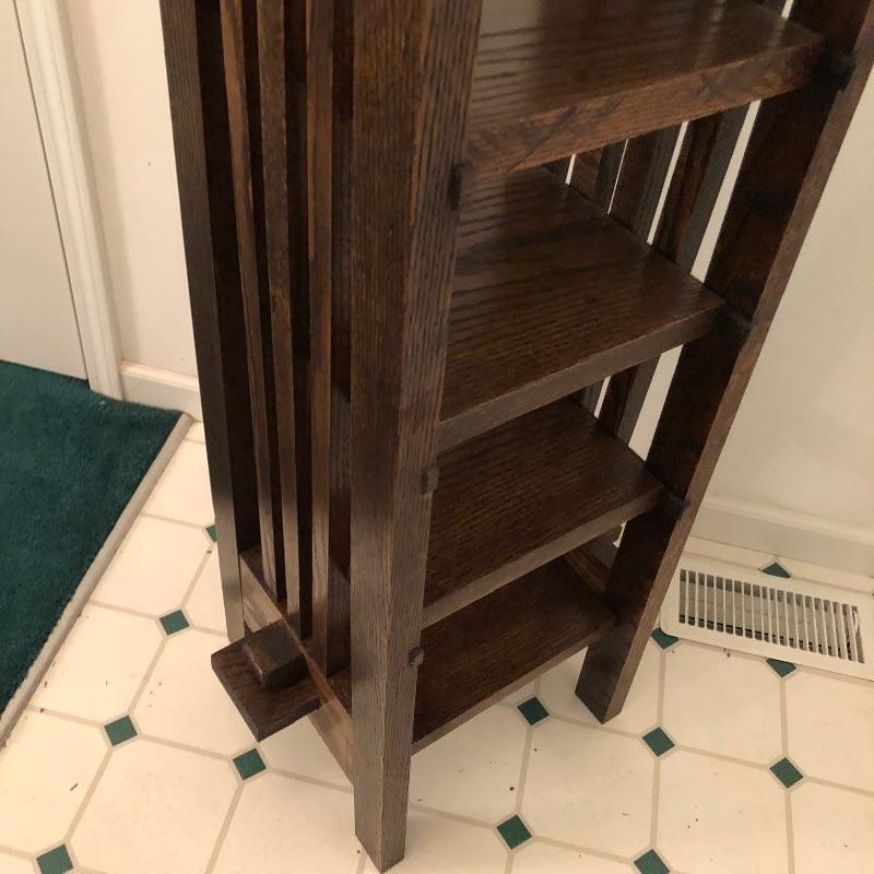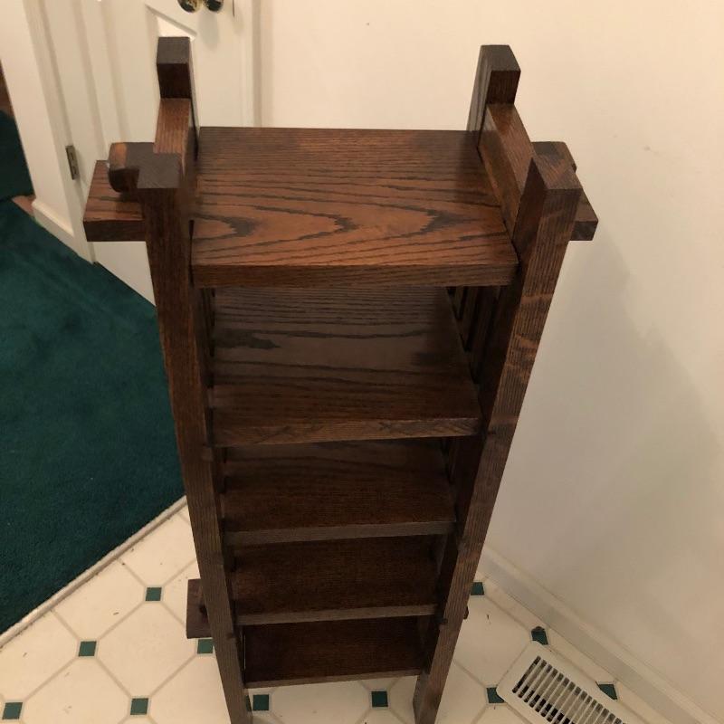 Very sturdy bookcase here with that Arts & Craft look. Four shelves, five if you include the top, this handsome piece should fit into any space nicely.