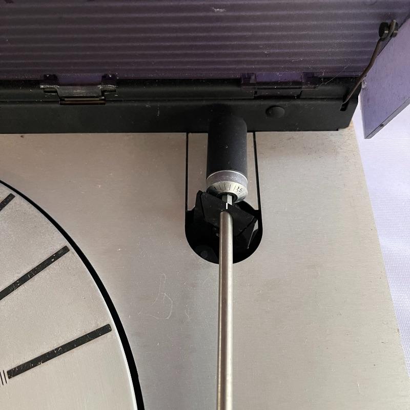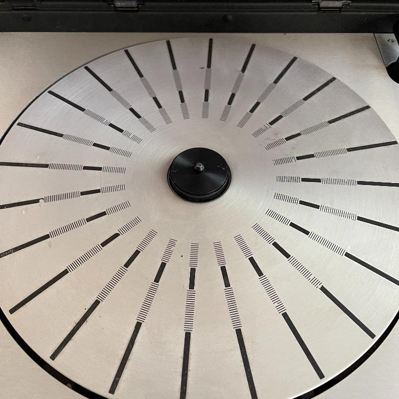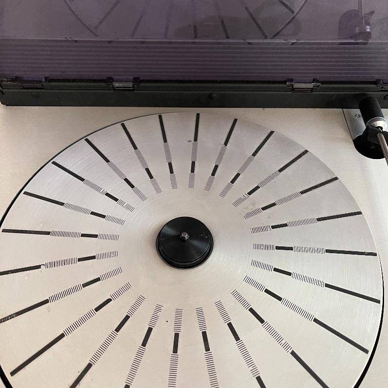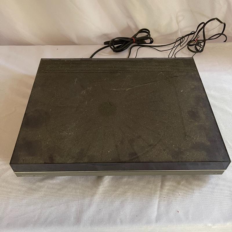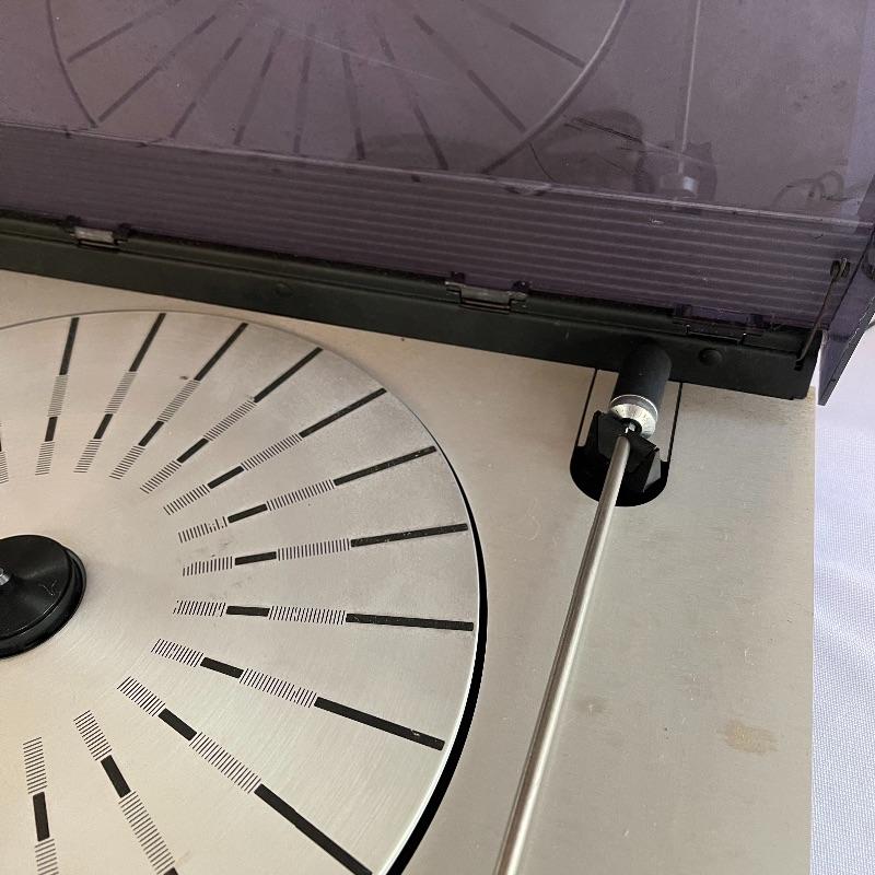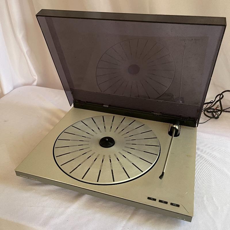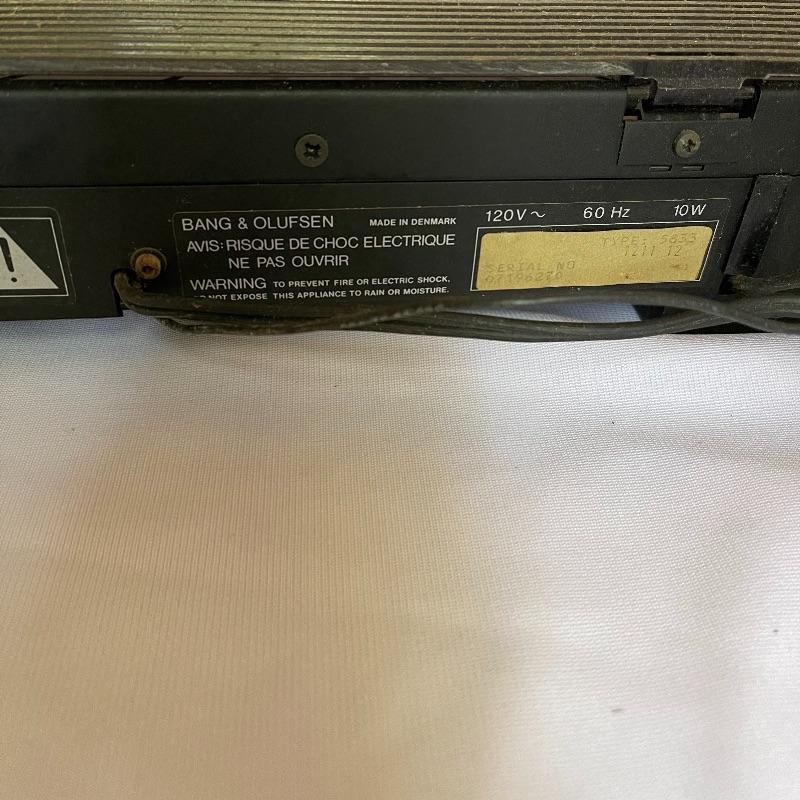 Bang and Olufsen Beogram Rx2 turntable. This turntable was made in Denmark and the model number is 5833. When plugged in, it powered on and made a humming noise.