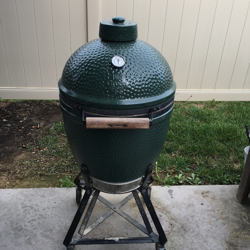 Lots and lots of grilling weather still to come this season and why not grill in style with one of the best grills available on the market today. This Big Green Egg. Grill is accompanied by a nest, pizza stone, grilling utensils and its original cover. Egg without nest measures 21.5”D x 34” tall. Bring help grill is heavy.