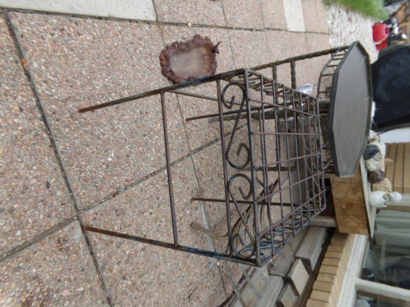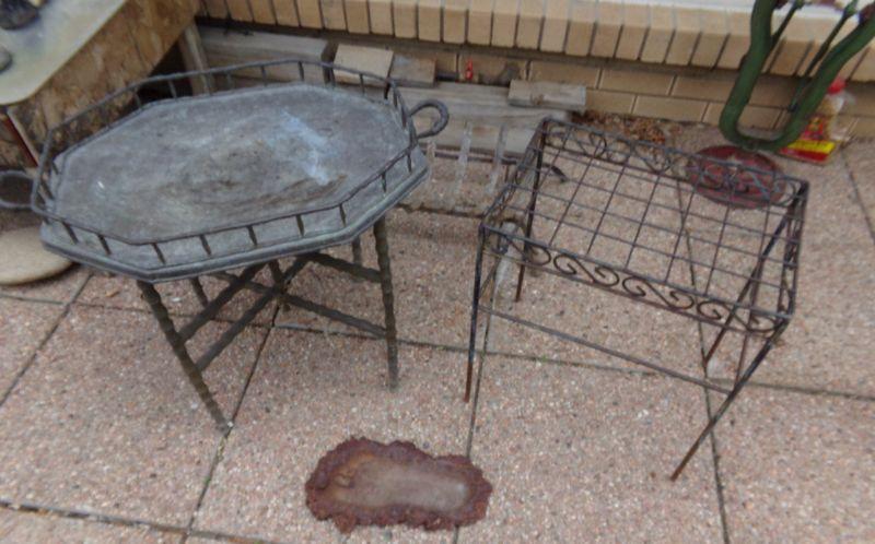 THE METAL TABLE MEASURES 16” X 12” X 18” AND IS IN GOOD SHAPE.