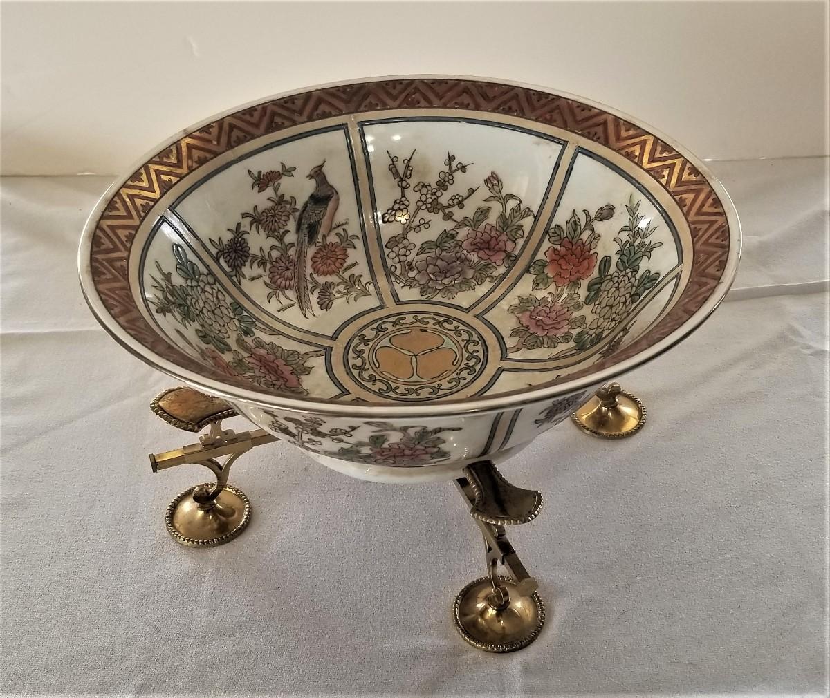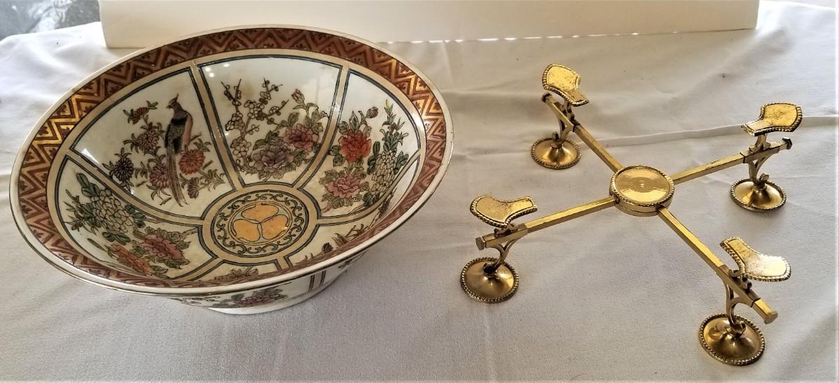 Lot #95  Contemporary Center Bowl on Heavy Brass stand - Asian Styling