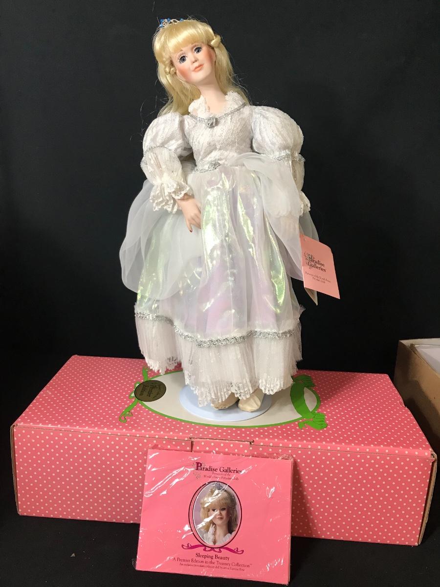 Lot 95: Collectible Paradise Galleries Treasury Collection Fairytale Princess Dolls - Rapunzel, Snow White, Cinderella & Sleeping Beauty