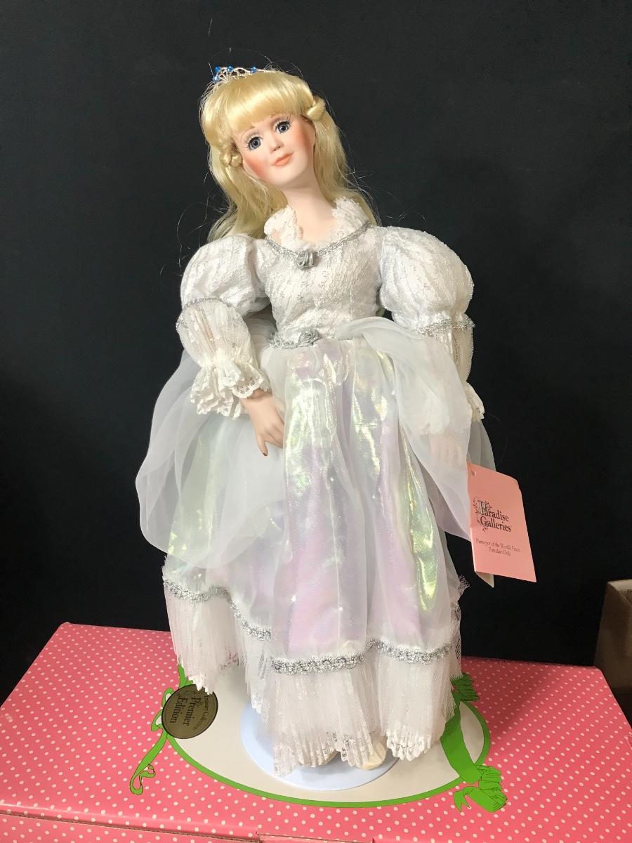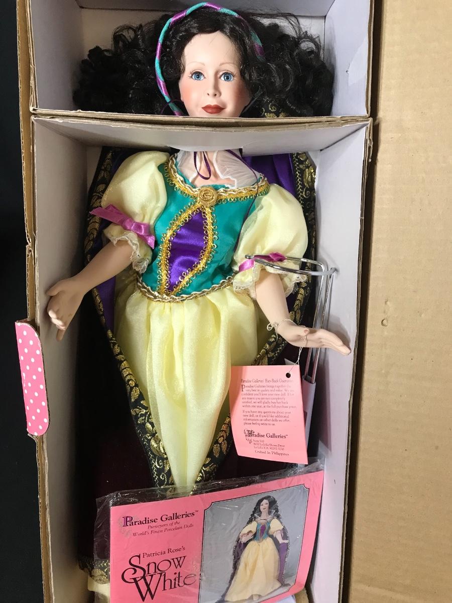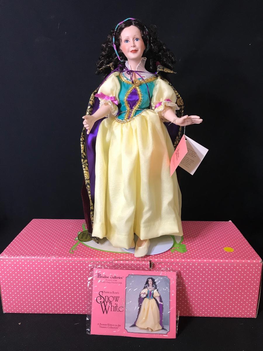 Paradise Galleries Treasury Collection Fairytale Princess Dolls - Rapunzel, Snow White, Cinderella & Sleeping Beauty. The Glass slipper has come unglued from the hand of the Cinderella doll. There is glue on her hand where the slipper once was. The slipper is included with the doll.. Please see all pictures as they are the best representation of the items. The pictures show condition, measurements if taken, and what is included in the lot. Due to the large amount that we photograph and the time frame, we are not always able to take measurements. All items unless noted, are pre-owned and have been used. Please bring packing materials for your items. If you purchased furniture, you must bring help. We do not allow one person to carry large furniture out on their own. Bring help, tools and a truck for your personal safety. Company policy. Thank you.