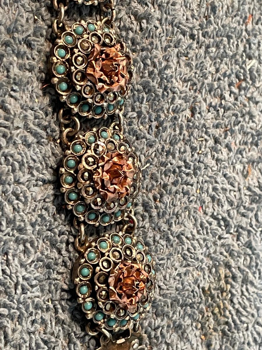THIS IS A GORGEOUS VINTAGE 800 SILVER TURQUOISE MARCASITE BRACELET!!! IT IS MARKED.. 40.27 GR TOTAL WEIGHT.. 3/4'' WIDE X 6 5/8'' LONG.. LIGHT WEAR...