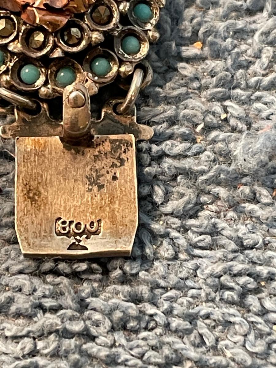 LOT 95 GORGEOUS VINTAGE 800 SILVER TURQUOISE MARCASITE BRACELET