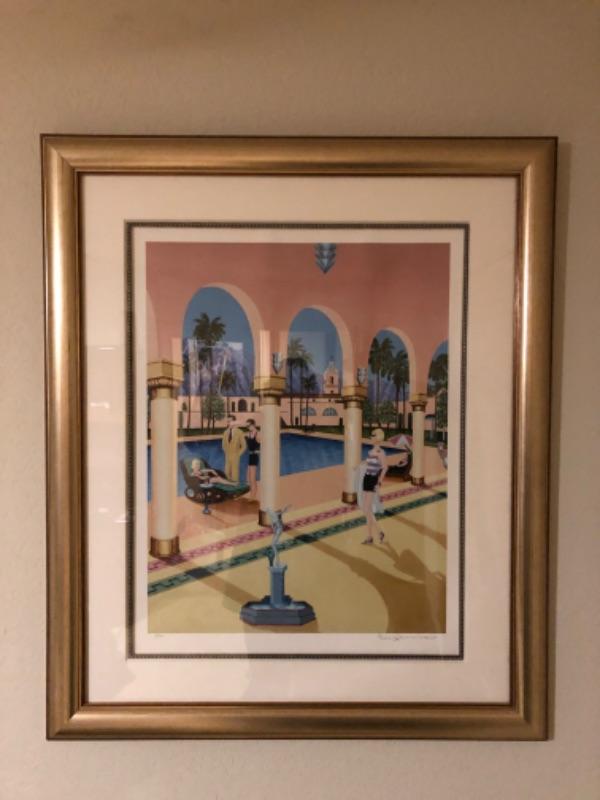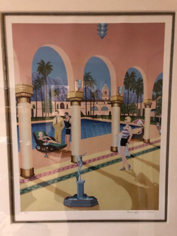 Lot 95 IW123. Limited edition, “El MiradorHotel” by Tracy Dennison, signed, numbered (4 of 400) framed print (28” x 21.5”); frame (33.5” x 39”)--$87.50