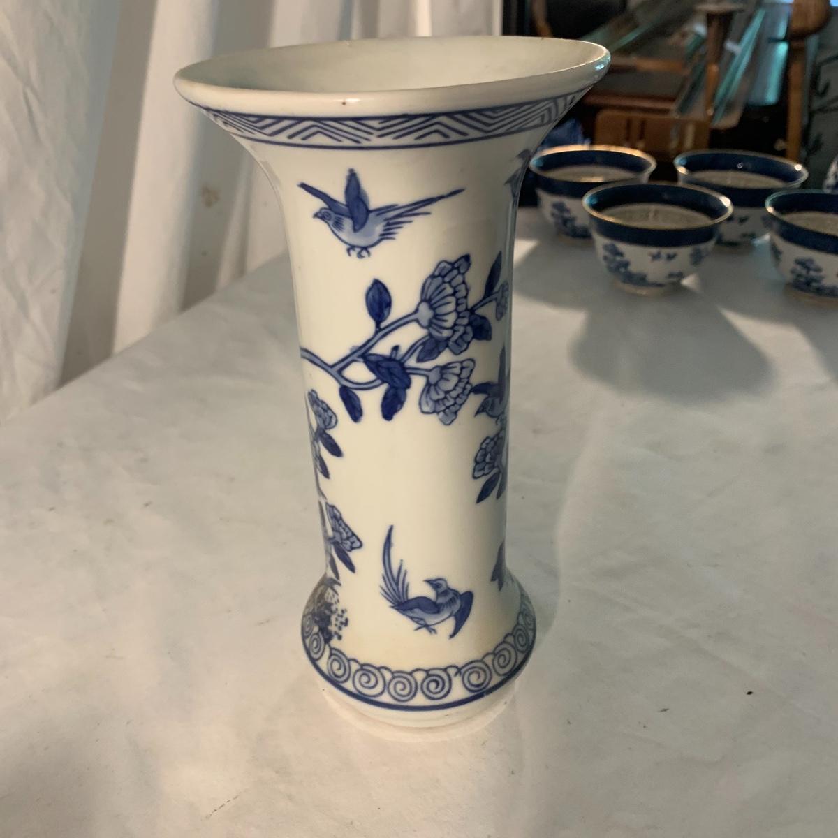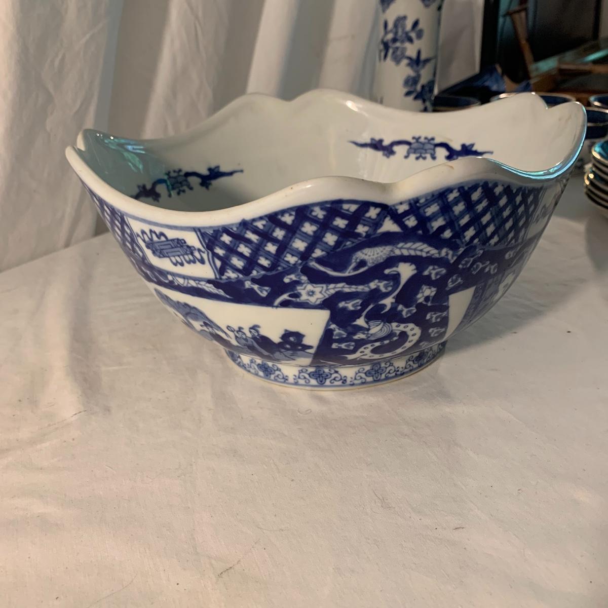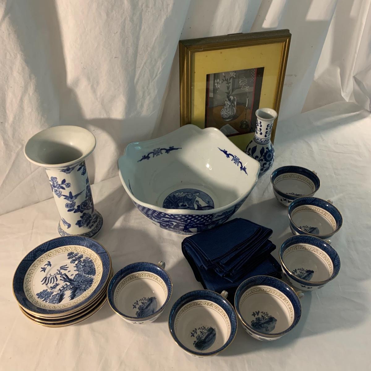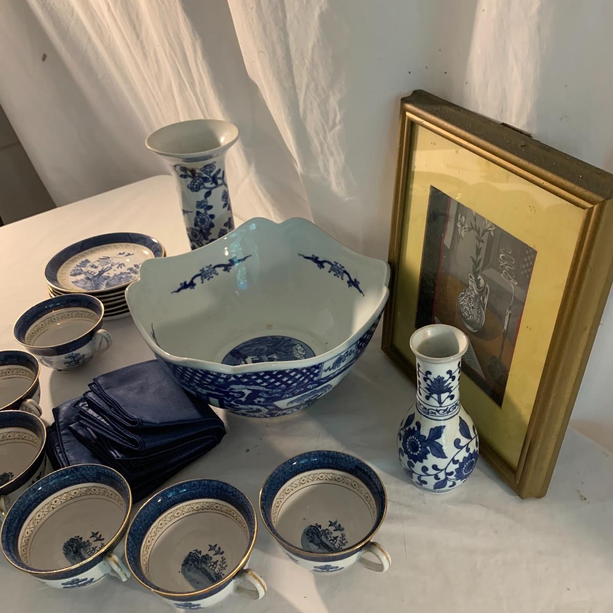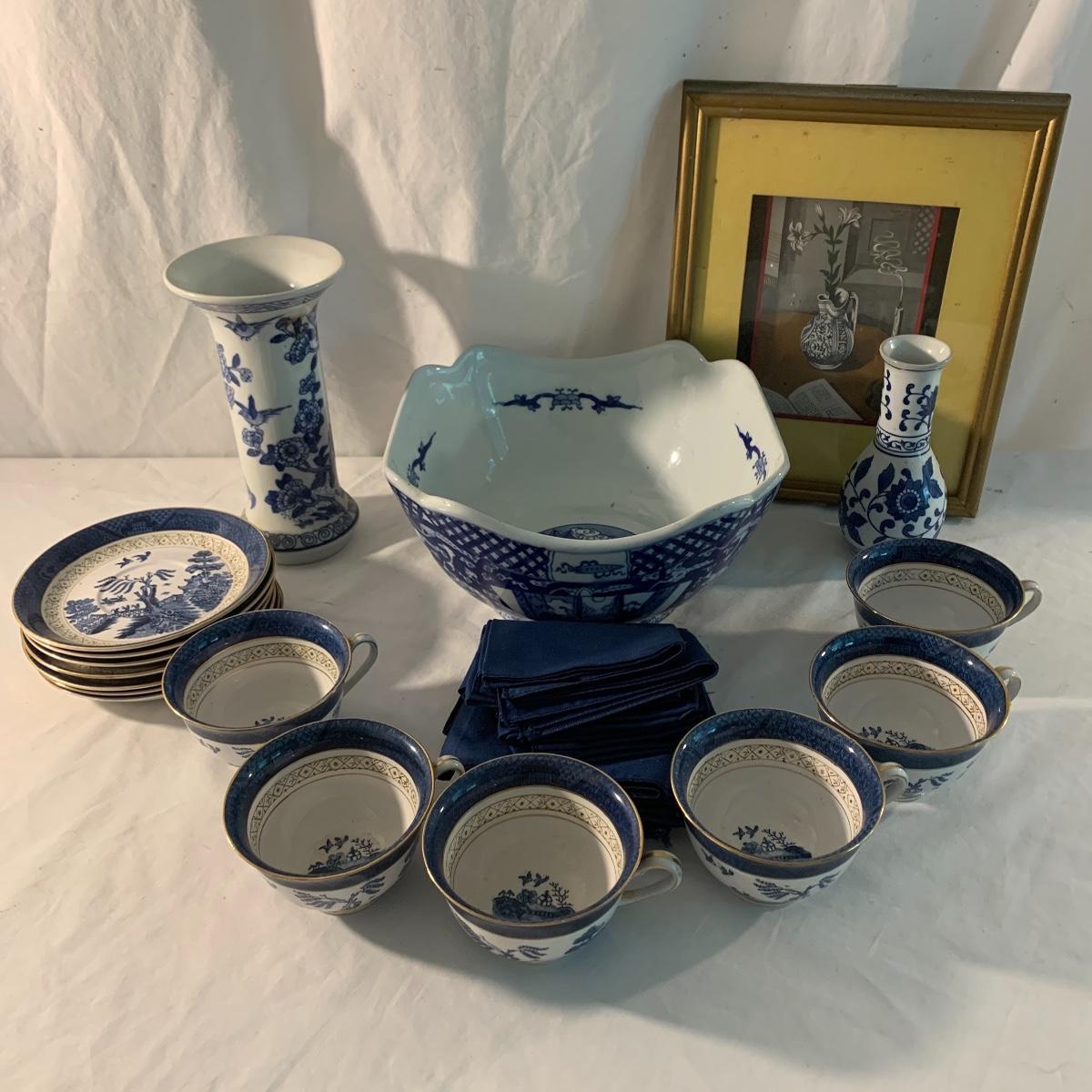 Lot 95 - Blue Asian Print, Tea Set, Vases, & Bowls