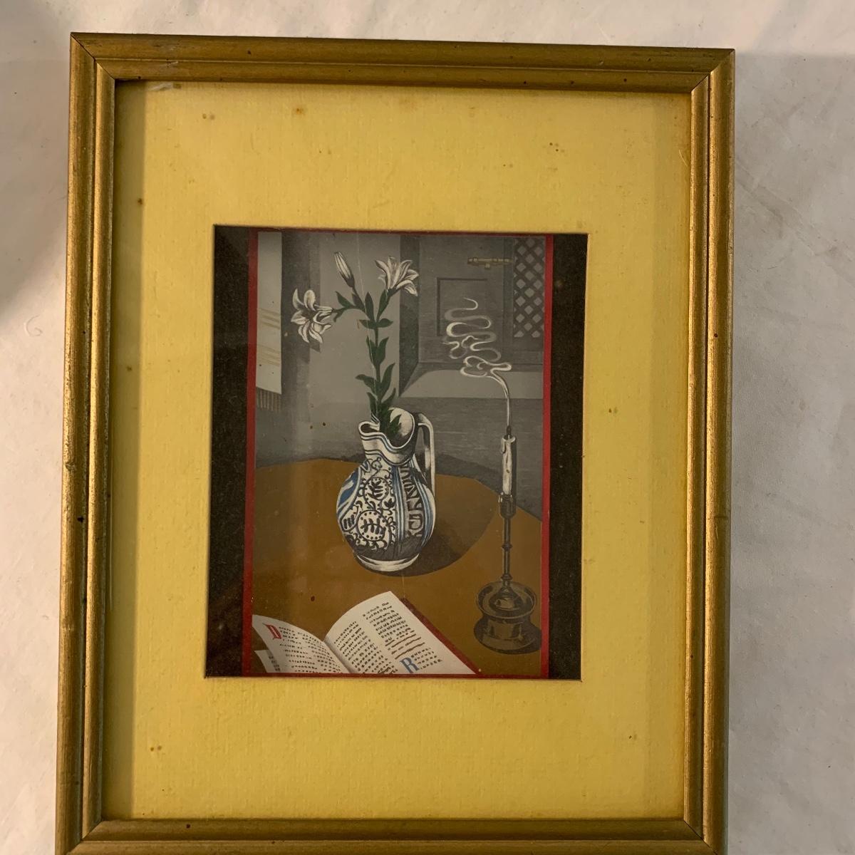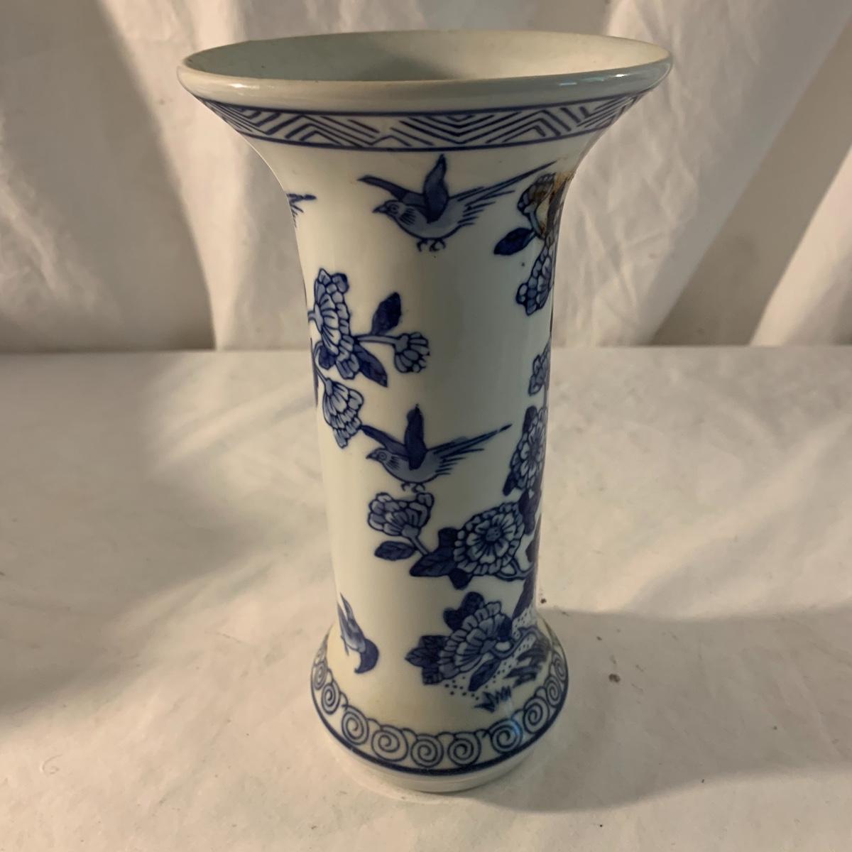 This stunning set of Asian ceramics features a vintage Japanese tea set marked “Made In Occupied Japan”, which dates from 1945-1951. This set is rimmed with gold colored trim, and feature an exquisite natural design (see pic). Next we have two beautiful vases and a gorgeous bowl measuring 10” wide. These three pieces are made in China. Lot also includes blue napkins and an adorable framed print. All pieces in great condition, free of cracks or chips.