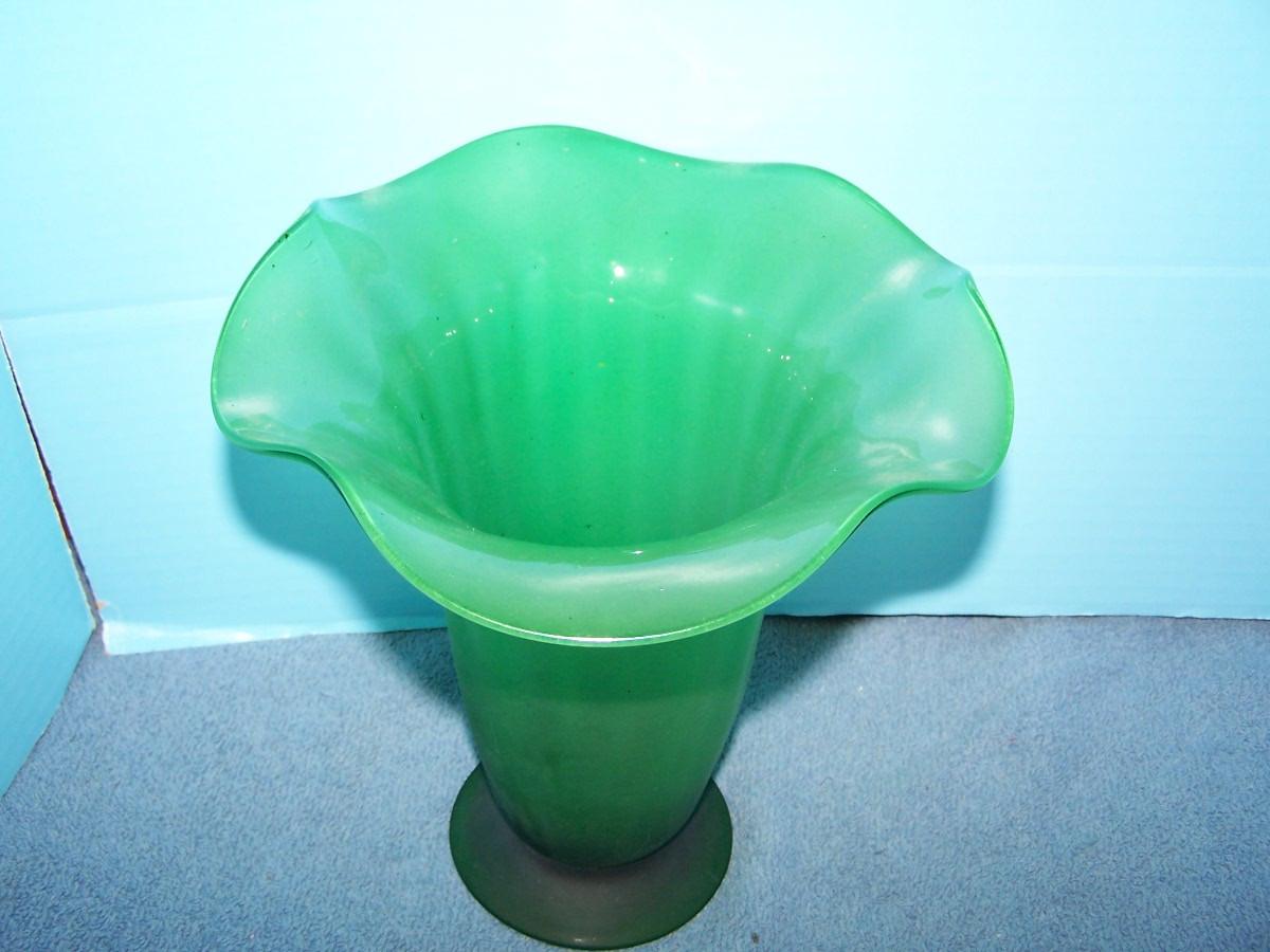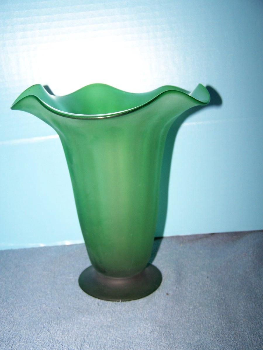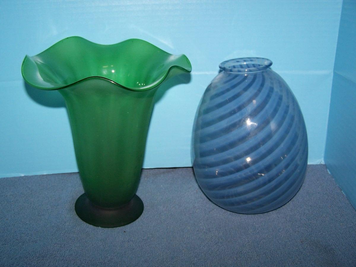 THESE ARE MORE LOVELY ART GLASS PIECES! UNMARKED..GREEN-8 3/4'' TALL.. LIGHT WEAR..