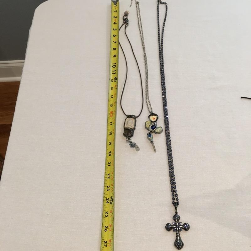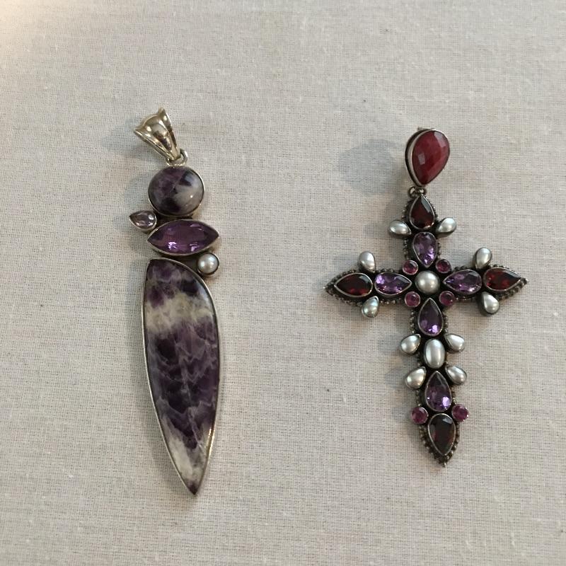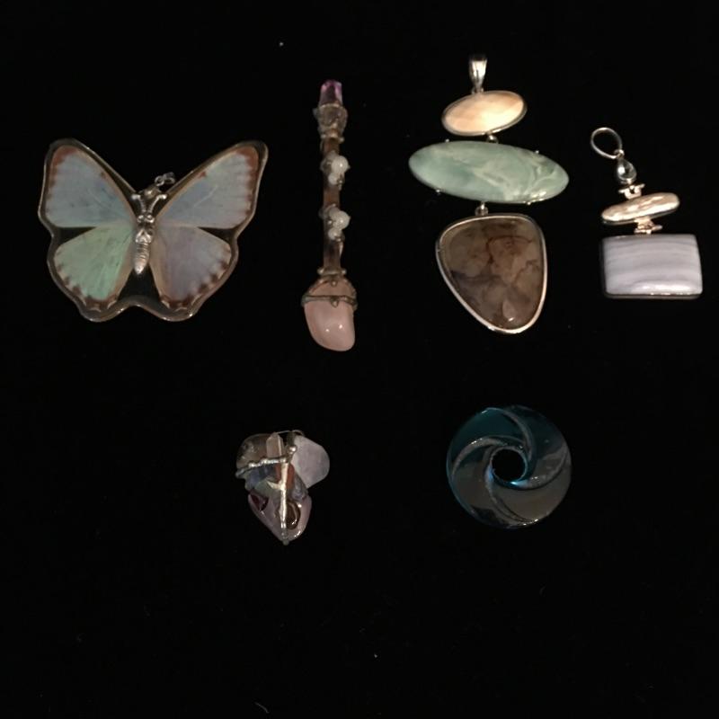 Captivating selection of pendants and necklaces in a variety of sizes, shapes and materials. Two pendants are marked 925, see pictures for more information. A great selection of jewelry is sure to add pizazz to your collection.