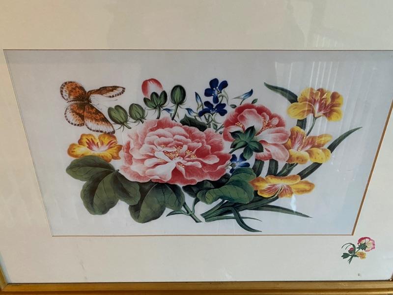 Pair of Beautiful Canton Floral Japanese paintings on silk measuring 26”x 20”