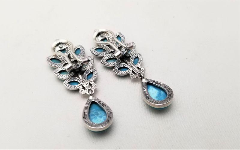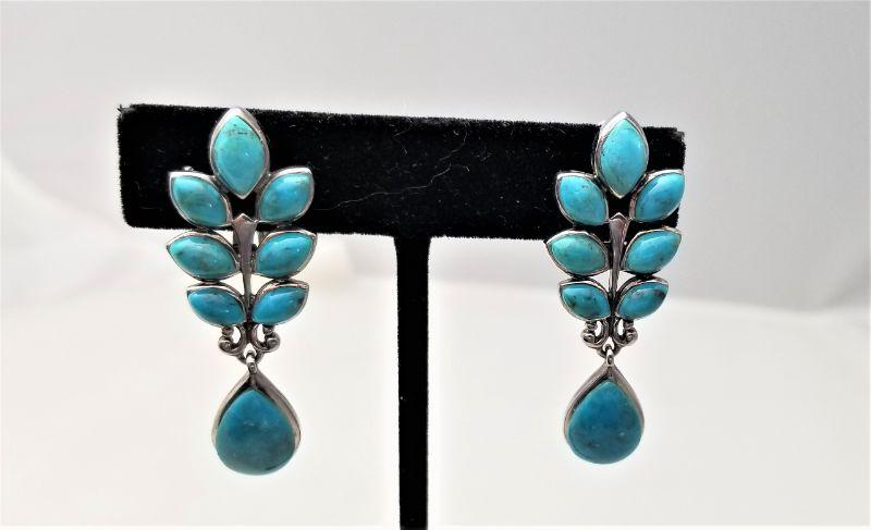 So pretty - nice pair of lever back clip earrings - sterling silver set with nice blue turquoise. Each measures 1.5" long. No box.