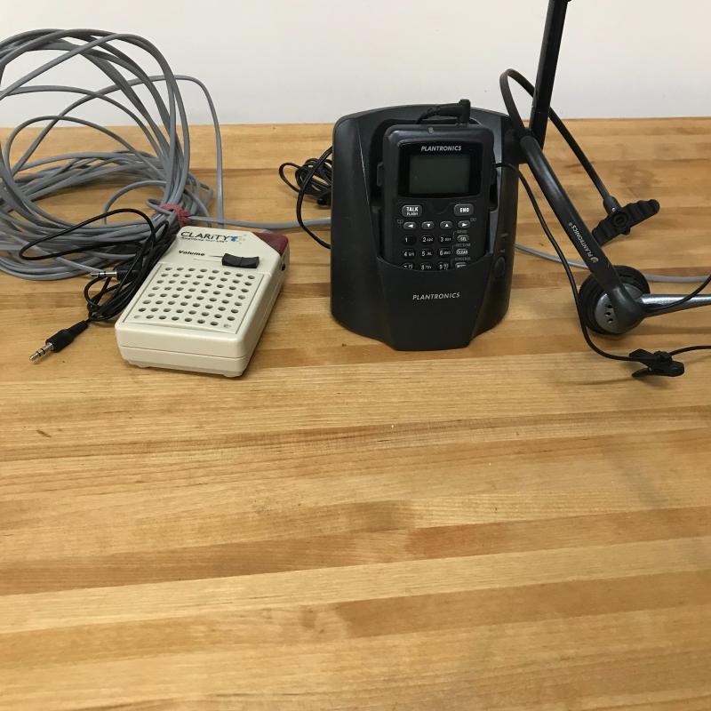 Plantronics Headset cordless phone system with amplifier included. Lot is available for shipping or local pick up.
