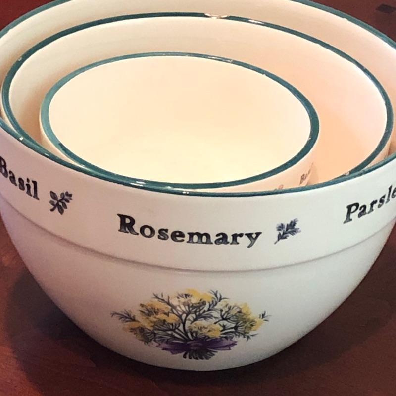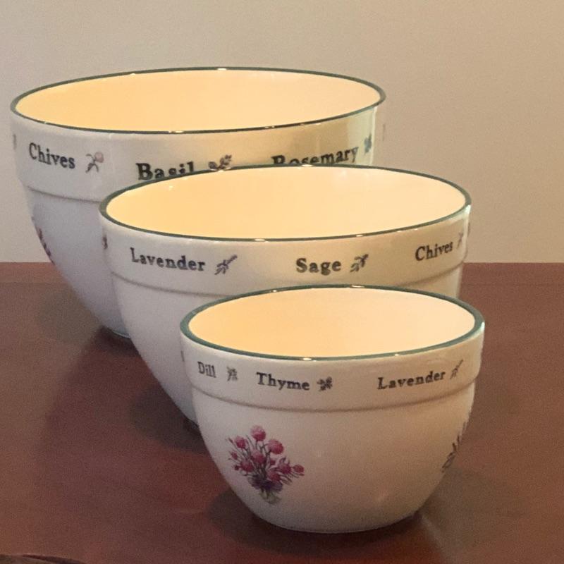 Cute set of Nesting bowls made in Portugal. Each bowl has a few chips see photos.