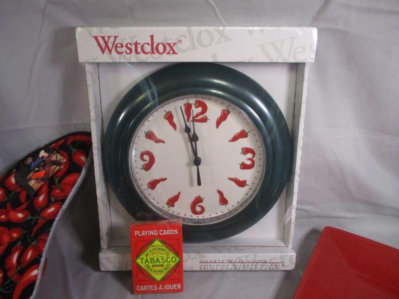 The gloves, deck of cards, and clock are still in their original packaging and the other pieces look as though they were only used for display.