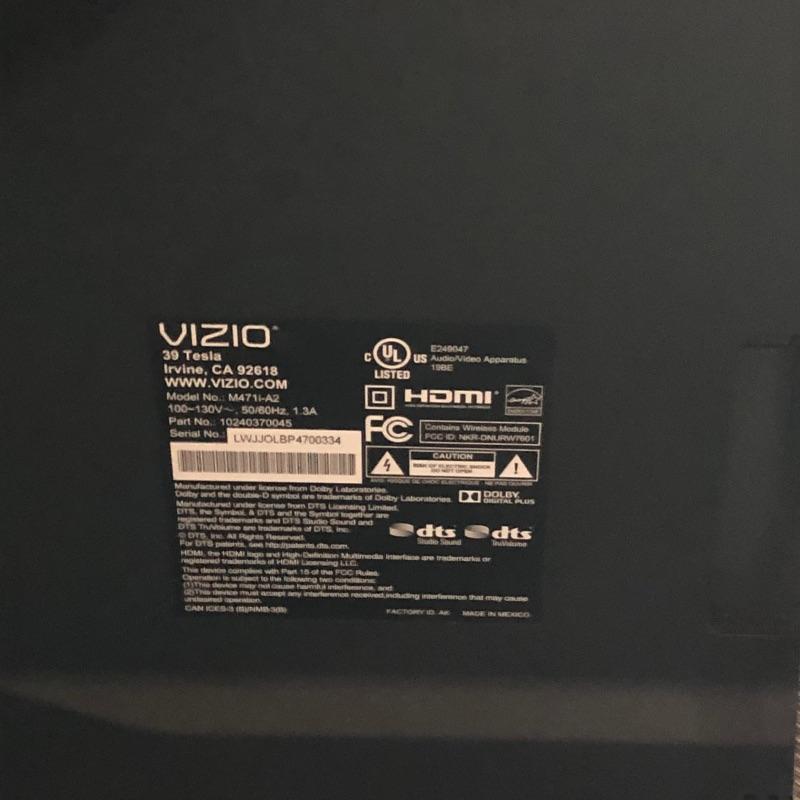 Not one but two flat screen TV’s for you here. The Samsung is a 46” and the Vizio a 47”. Both powered on when tested. See images for model information, etc. The Vizio does not have a remote.