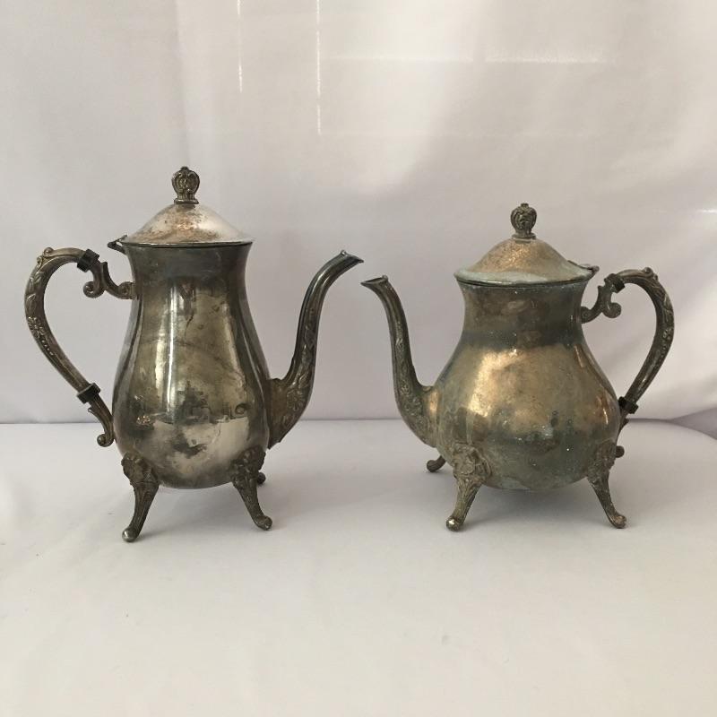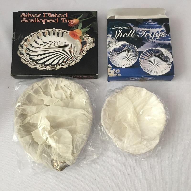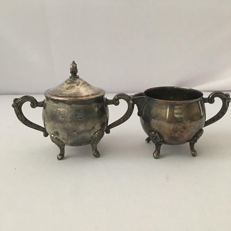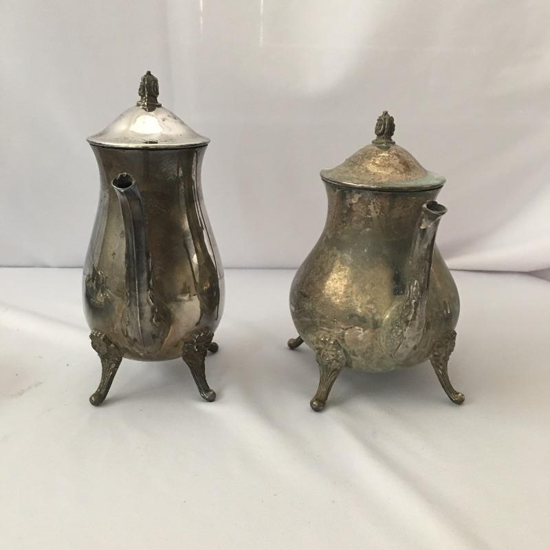 Silverplate array include large tray, two pitchers, cream and sugar bowl, bowl with top, pair of candleholders and two dishes still in box.
