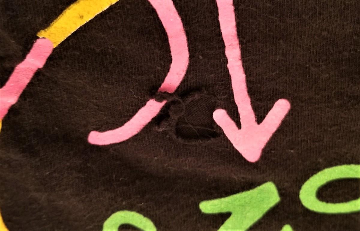 Official t-shirt from a B-52 tour - size Large. Has a quarter-sized hole in the front. and has been worn. From 1989. An original - not a repop.