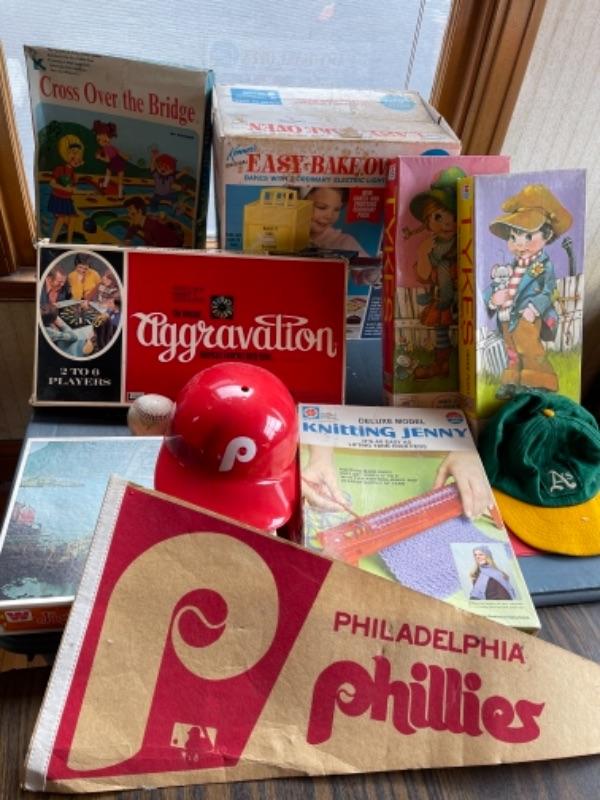 Lot 95. Vintage easy bake oven, baseball memorabilia, games, crafts, puzzles--Was $35 - - Now $15