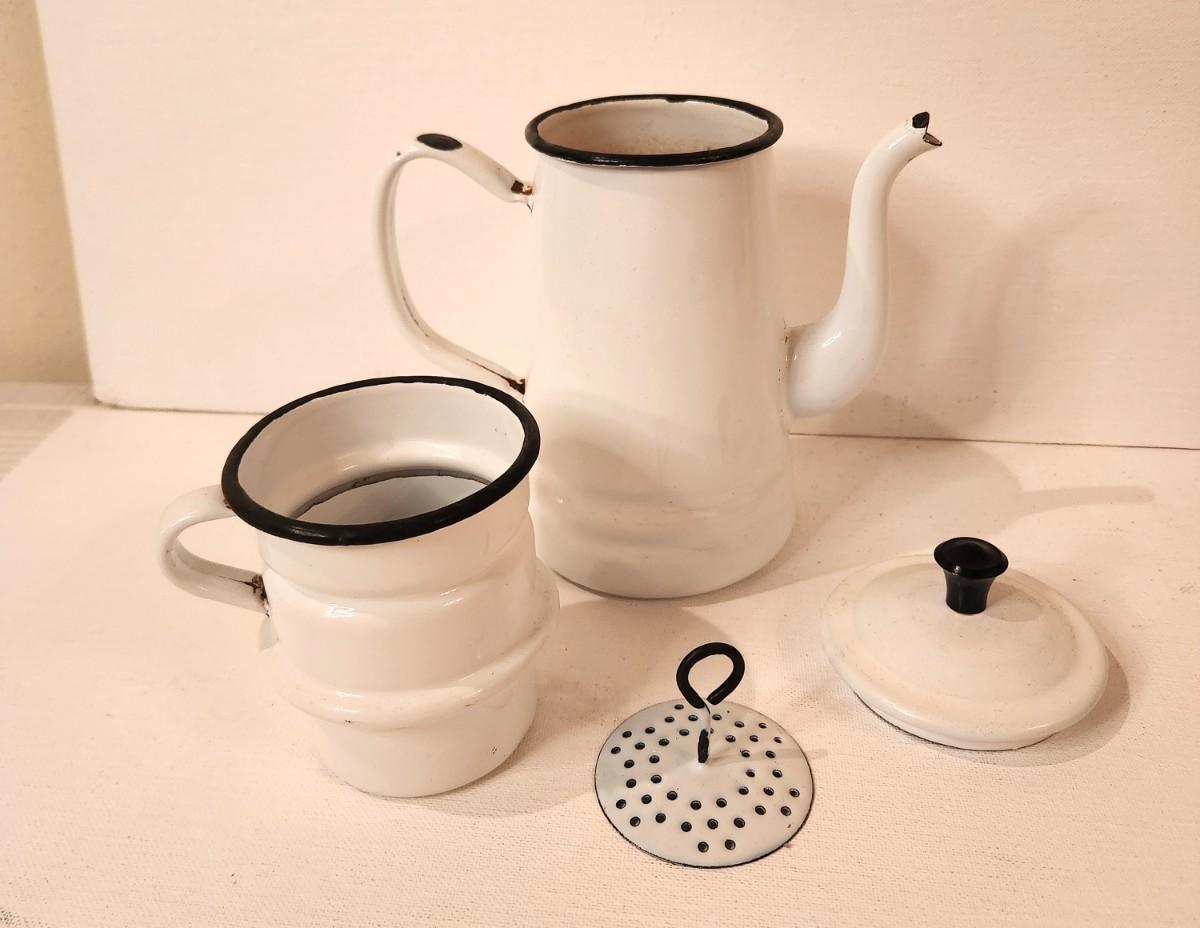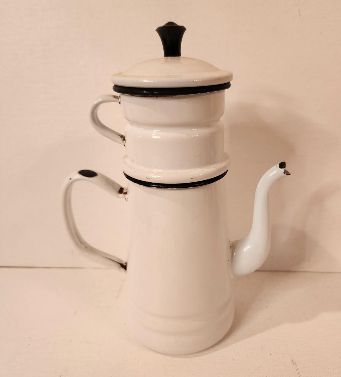Lot #95 Vintage French Style Enamel Coffee Pot - complete