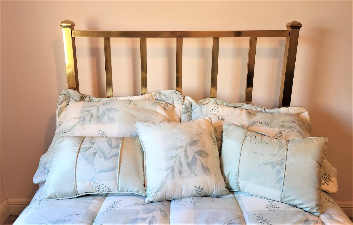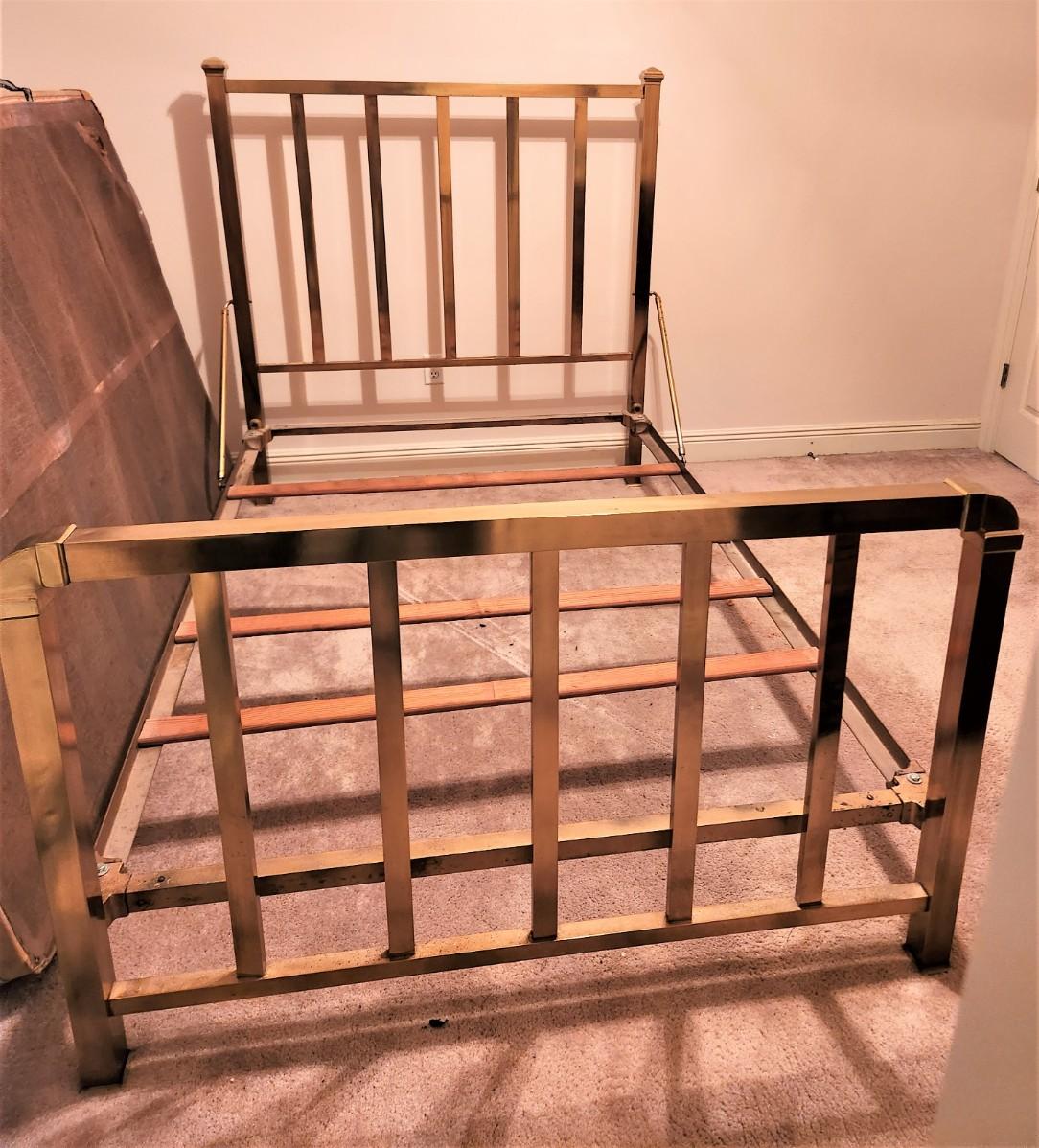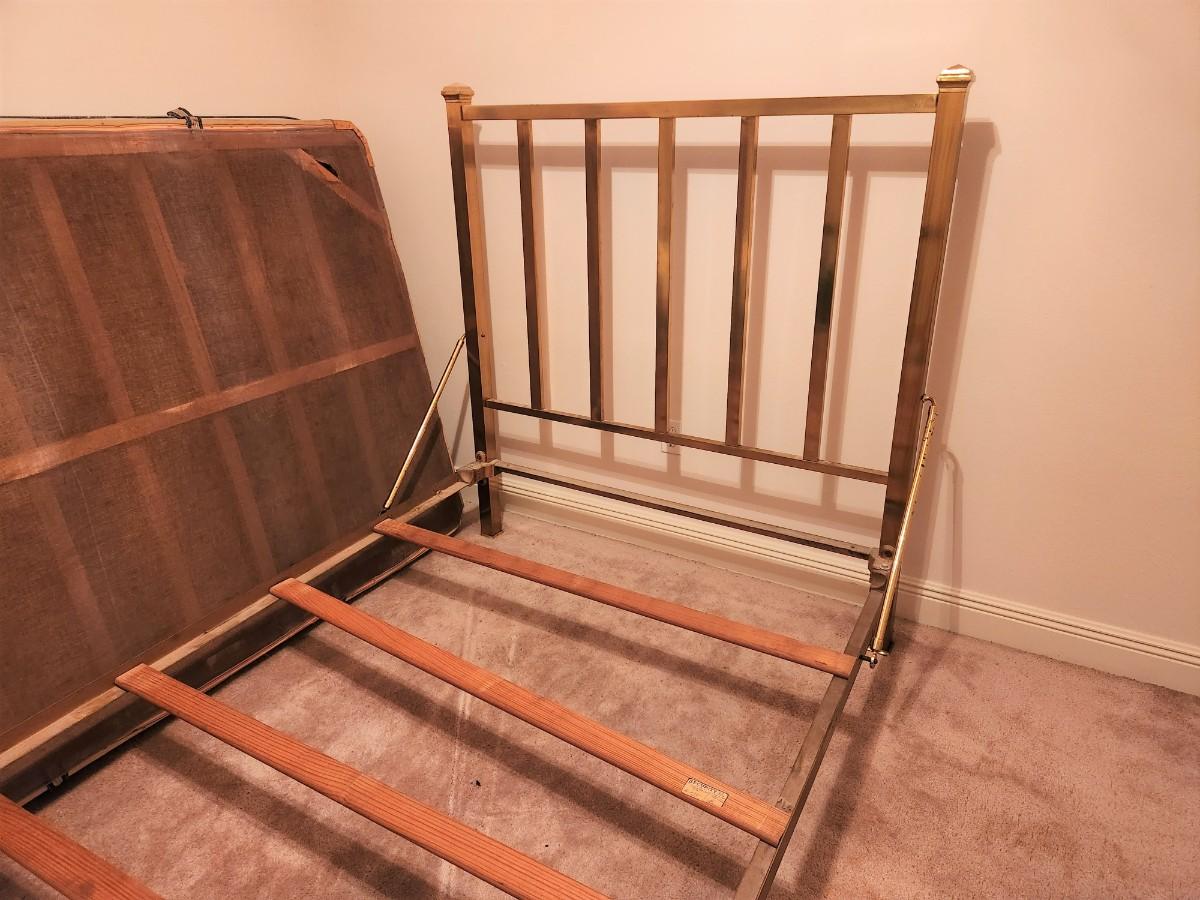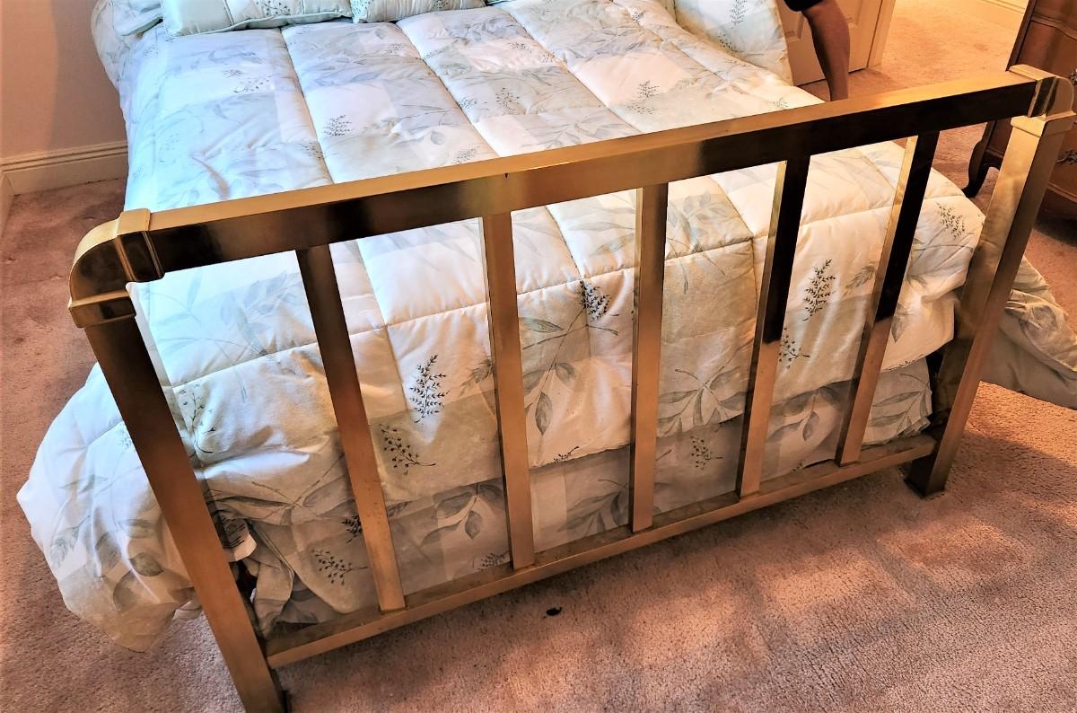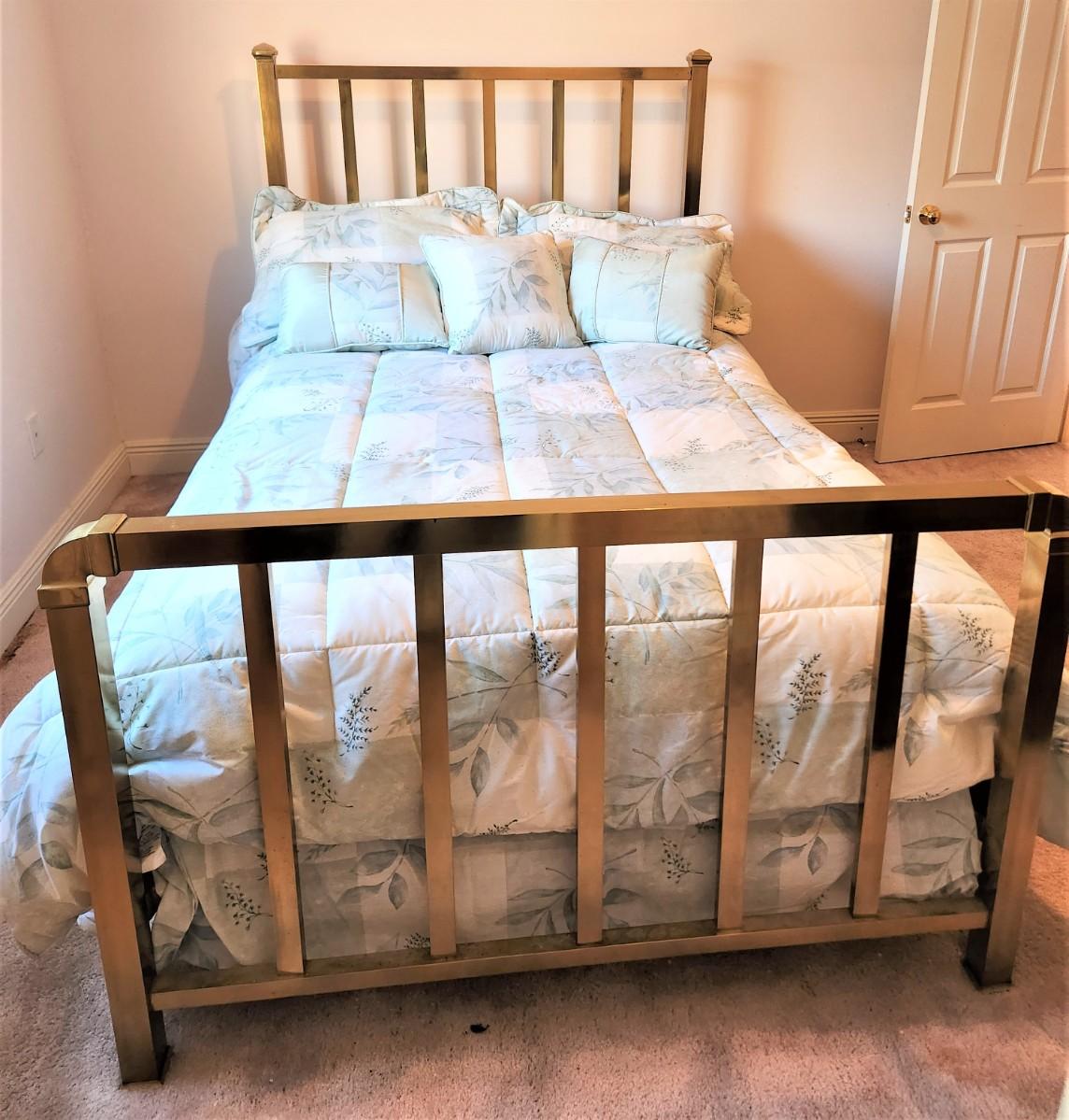 Lot #95  Vintage Polished Brass Bed - Double/Full with Linens