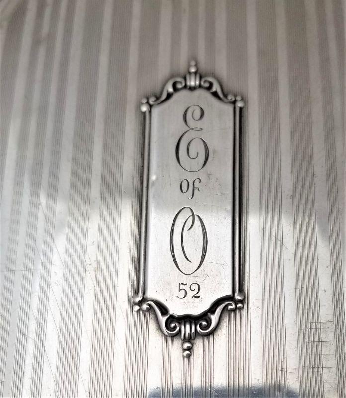 I would say this is definitely a Court Gift (probably from the King), as the regular favor from that year will come up later in this auction. Sterling Silver hand mirror, marked E of O '52 (Elves of Oberon). Good condition. Measures 13 inches long. Well made.