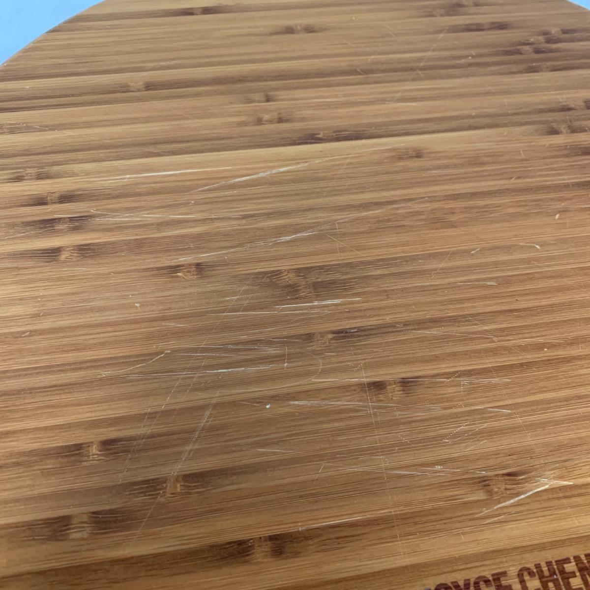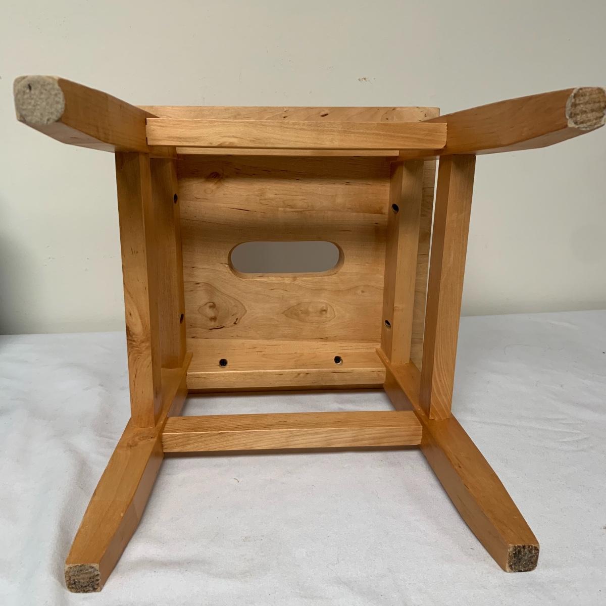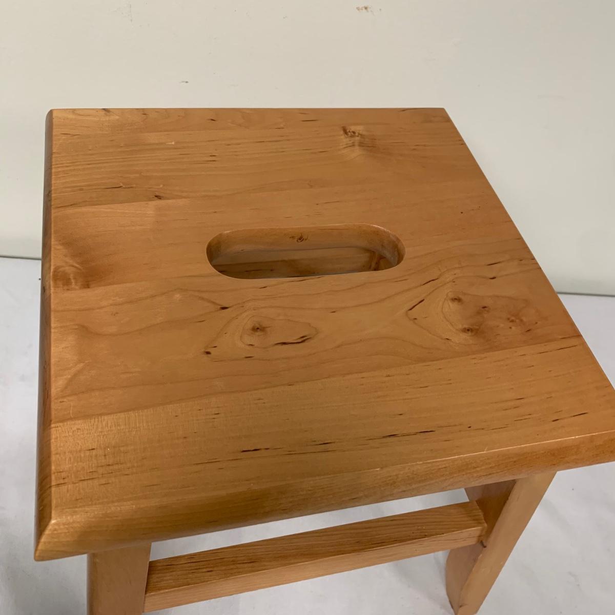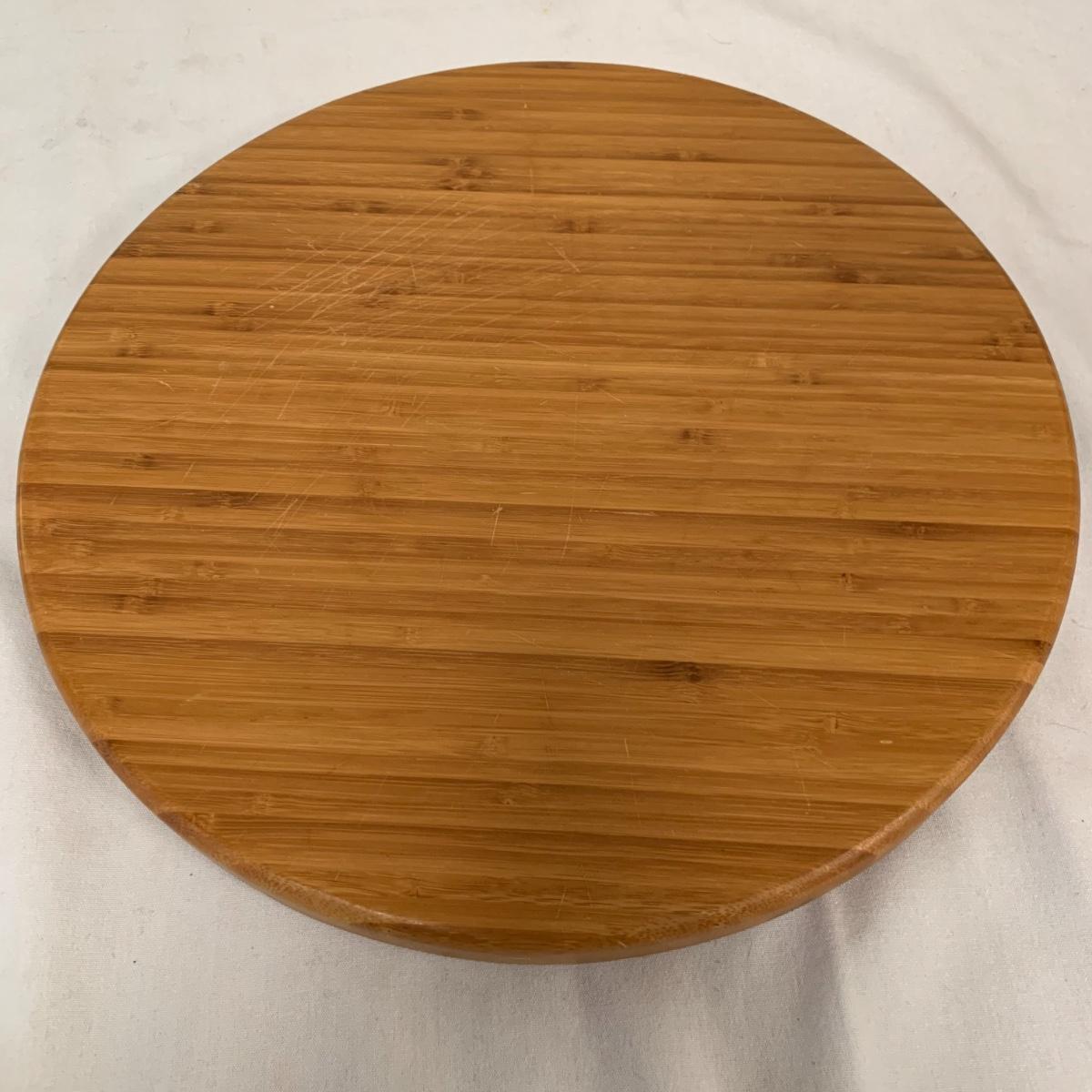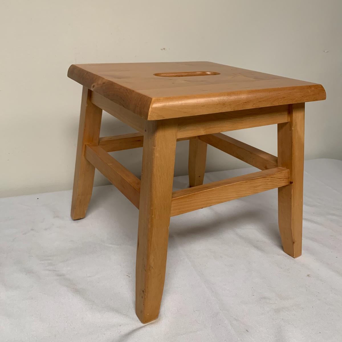 This lot includes one Wüsthof wooden knife block with a matching knife sharpener, one Joyce Chen round wooden cutting block / charcuterie tray, and one wooden step stool. The knife block has some light signs of use and is made of a heavier light colored wood. It measures about 8.5in x 11in. The round wood board can be used as a cutting block or serving tray. The cutting / serving block has some knife marks on both sides (see photos). The board also has handle indentions on either side. It measures about 14in. Diameter. The stepping stool is made of a light colored wood and measures about 12in x 12in x 12in. Shipping available.