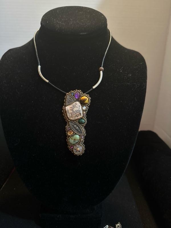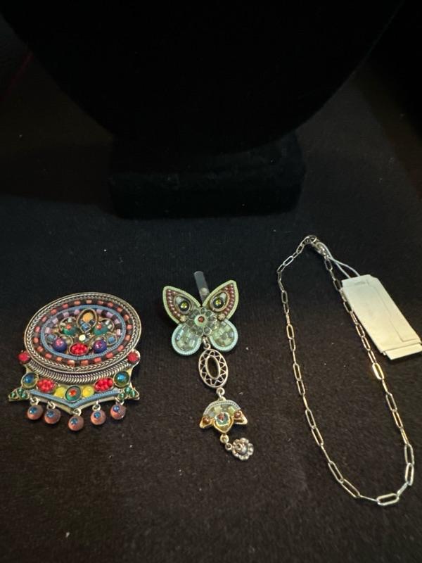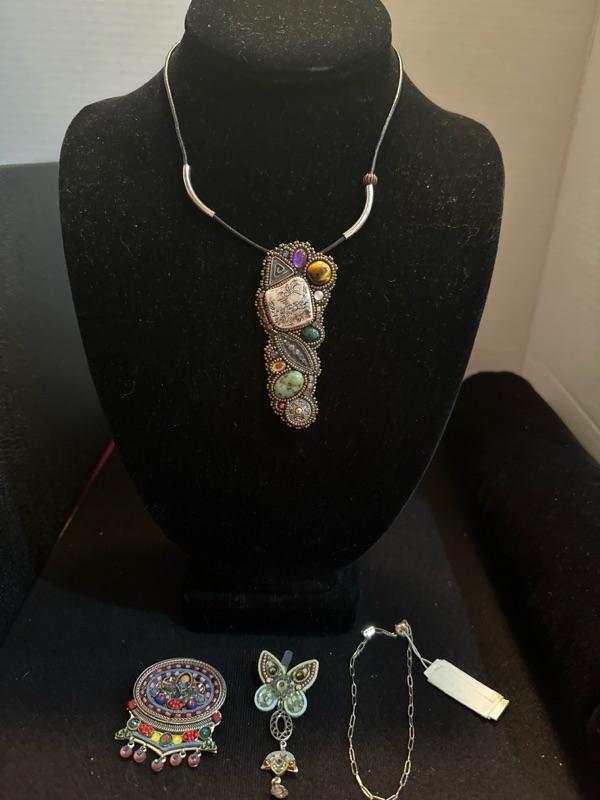 1 free spirit necklace, 2 pins/ brooches, one bracelet no markings