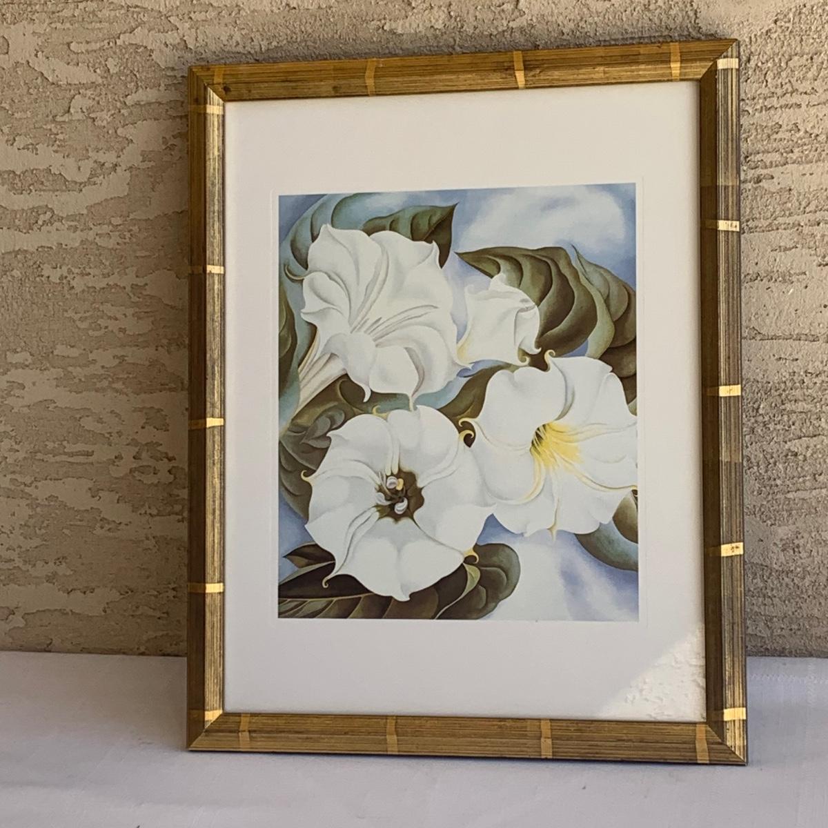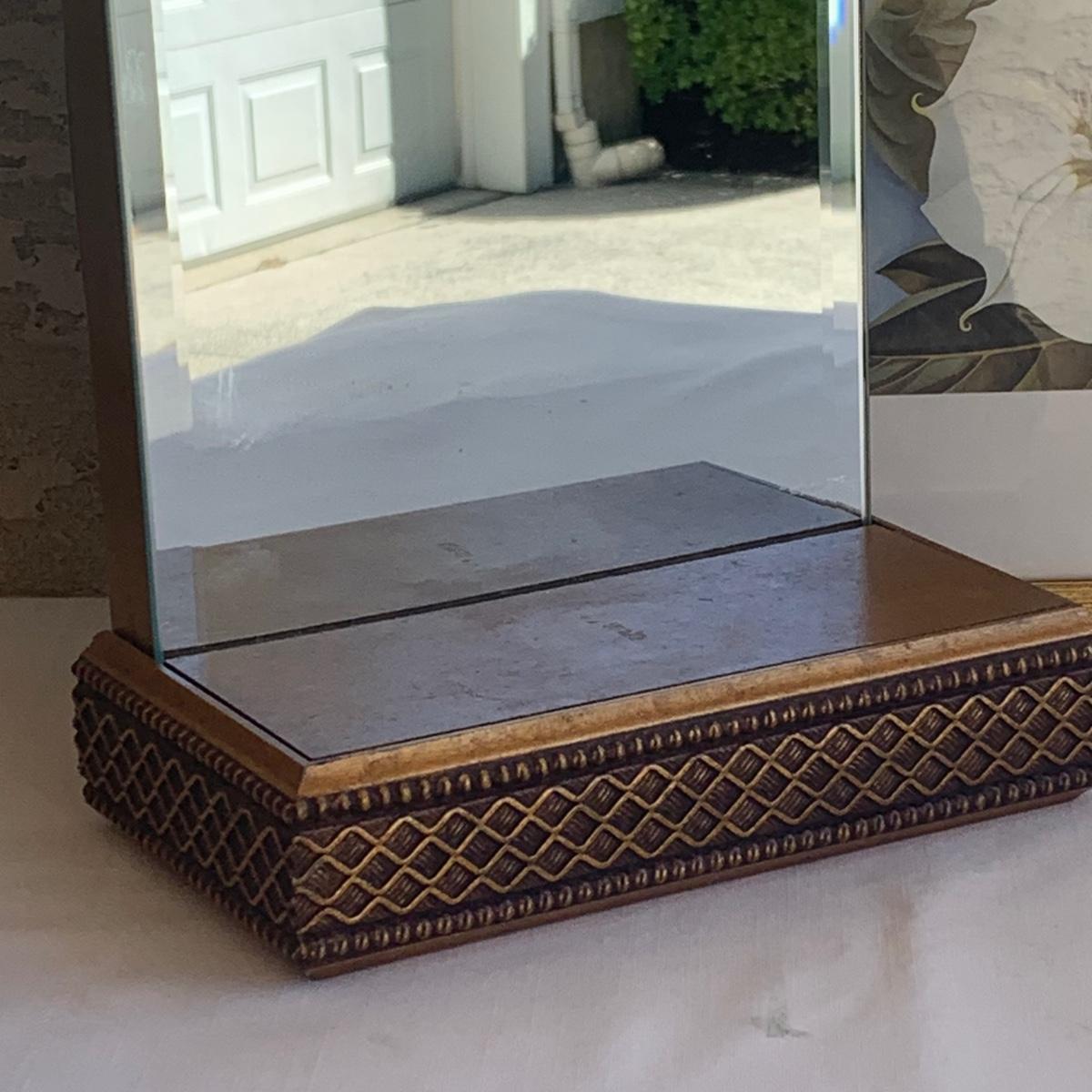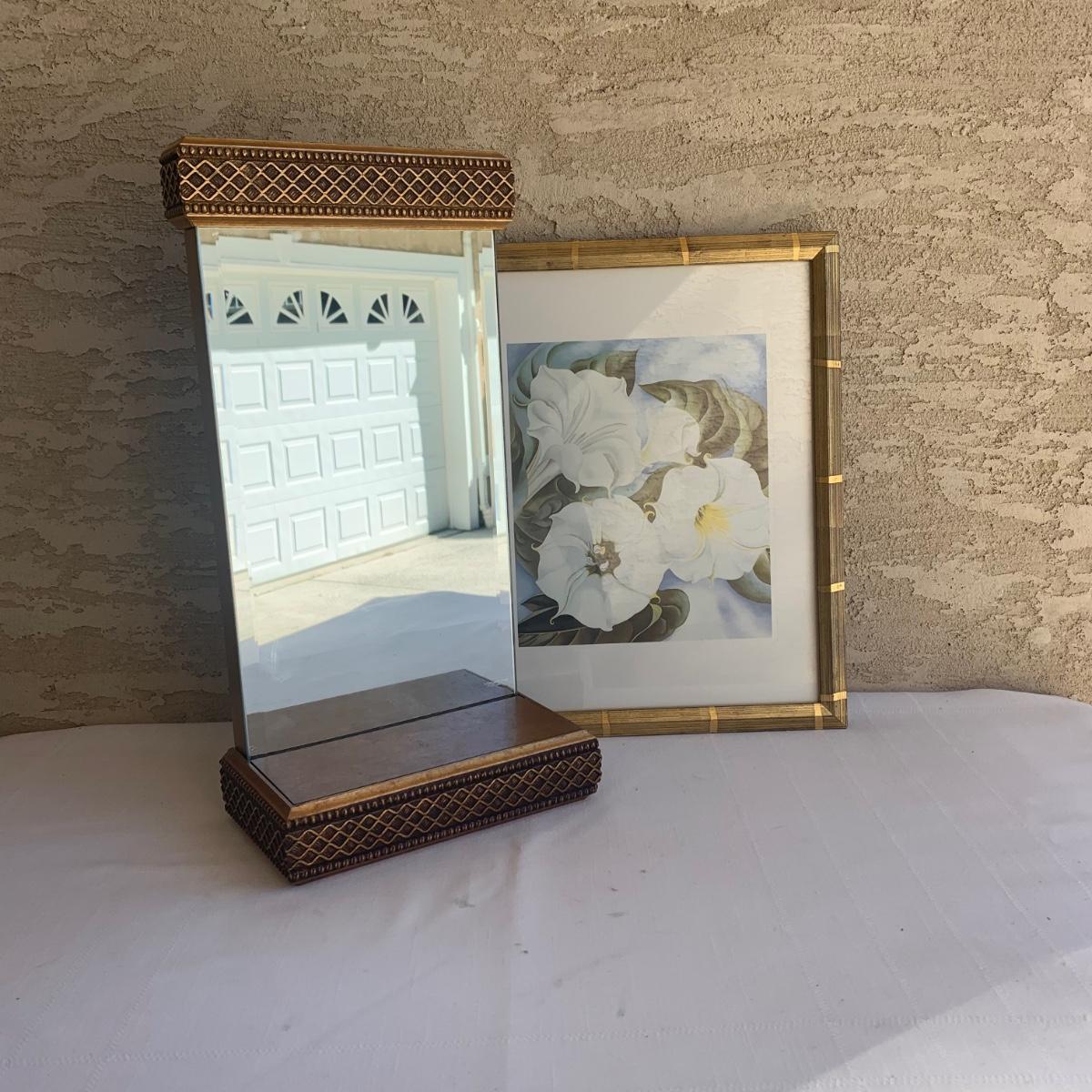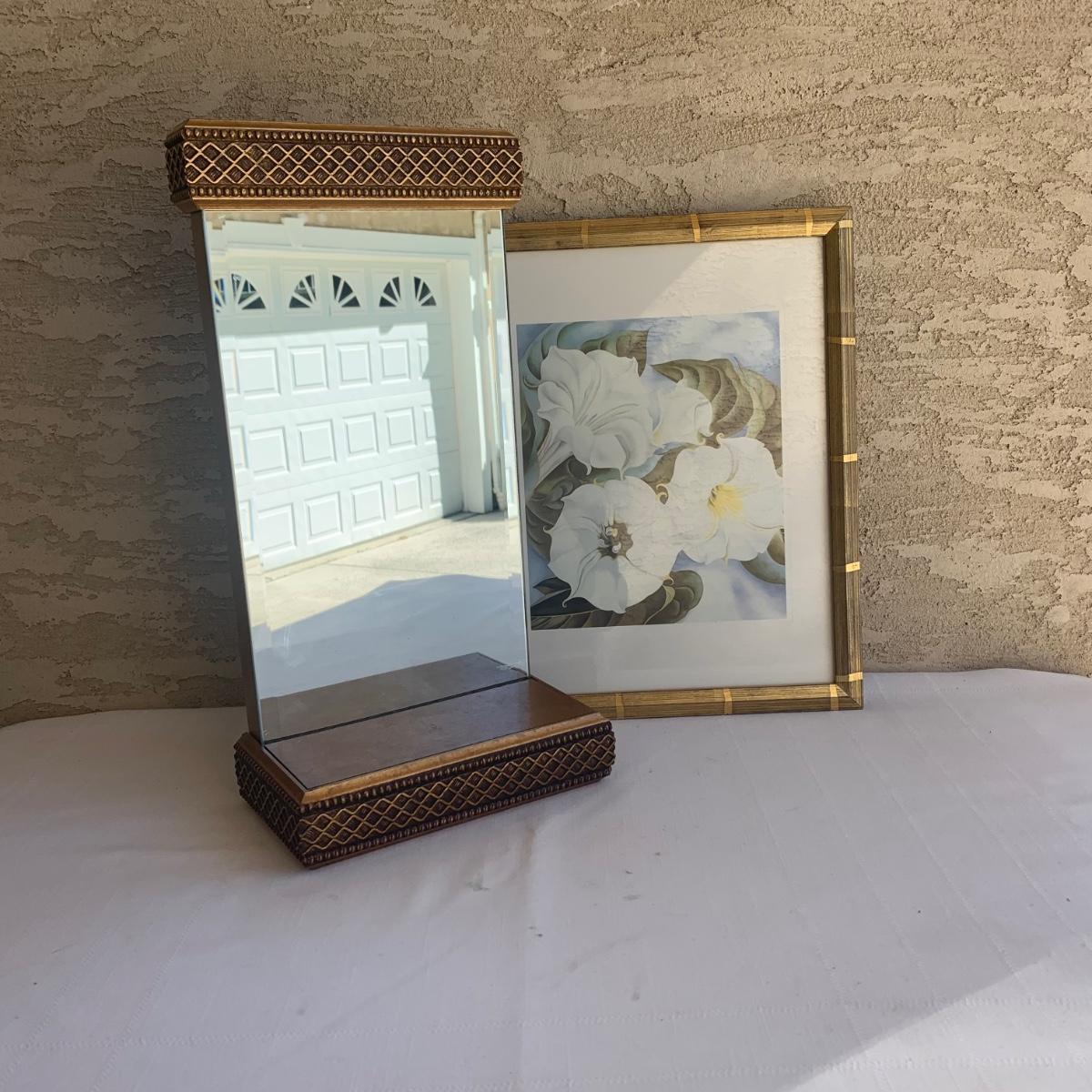 LOT 17R: Floral Framed Print & Gold Leaf Wall Mirror w/Shelf
