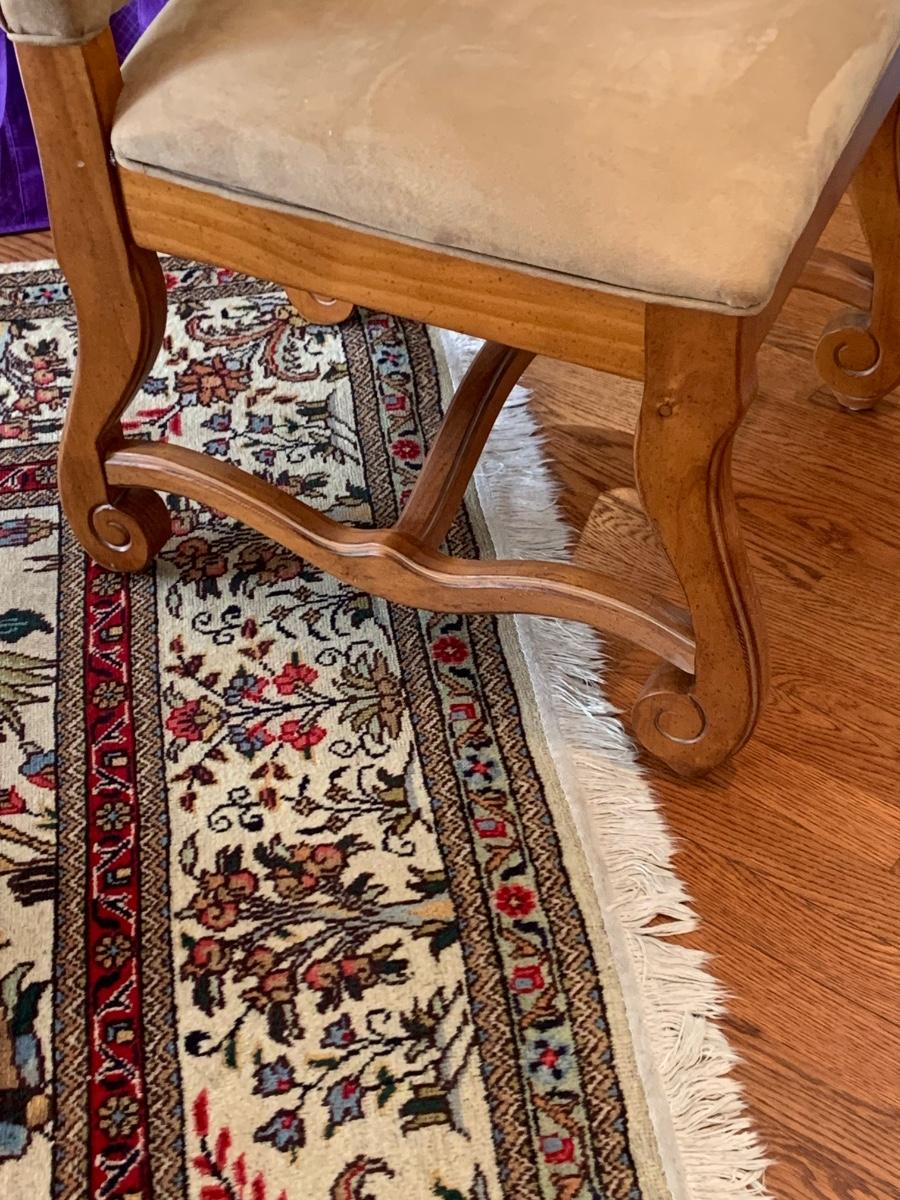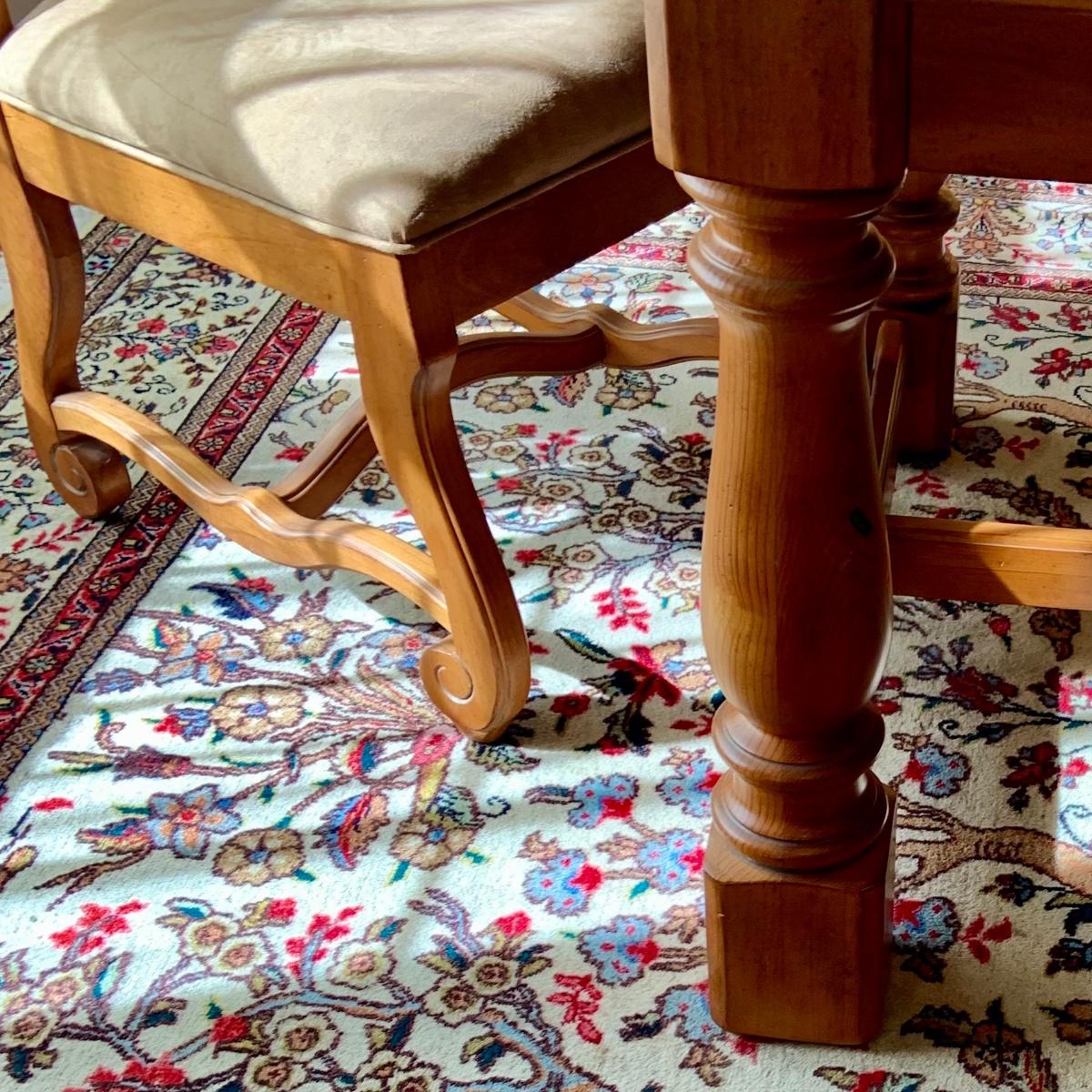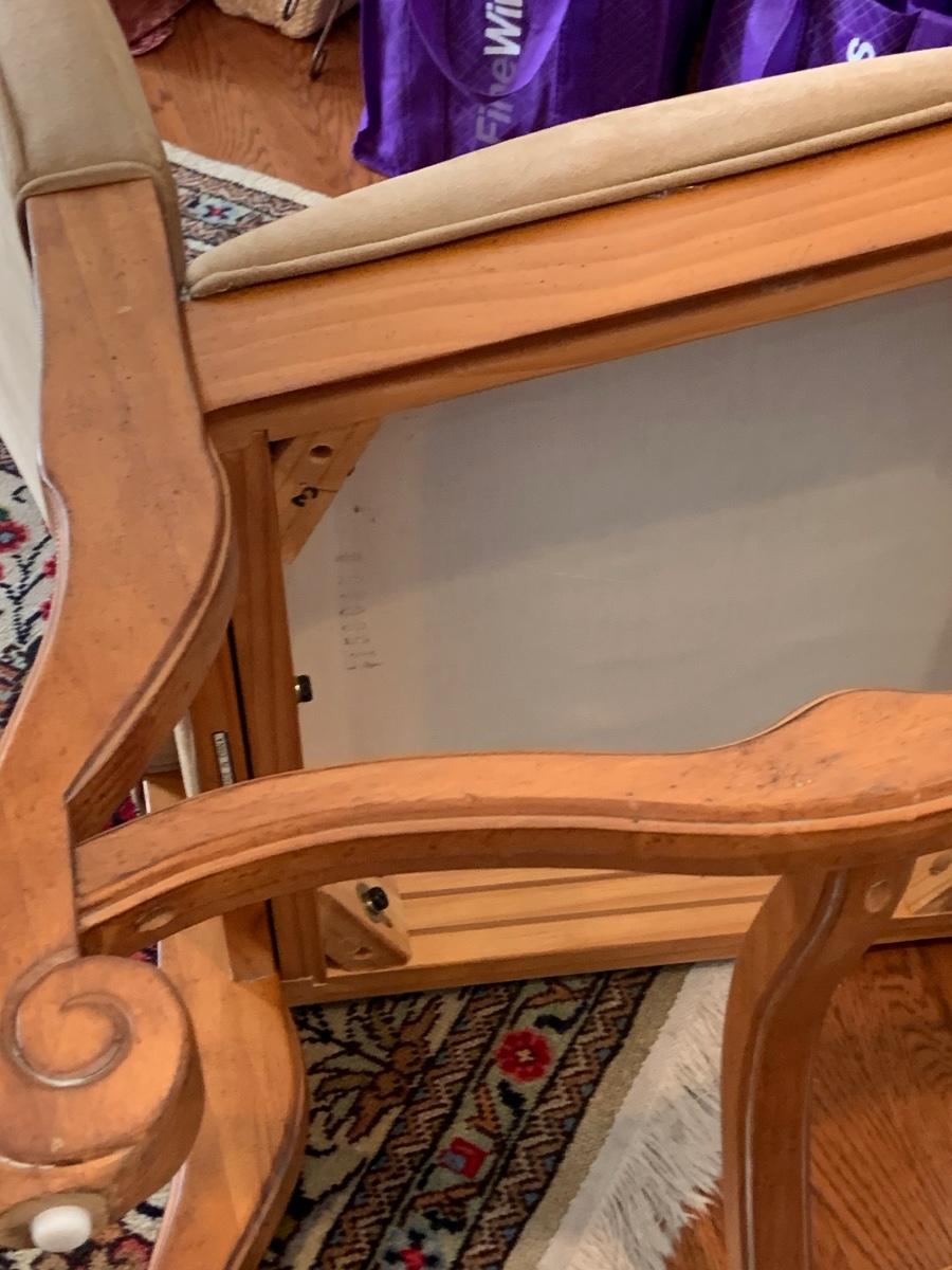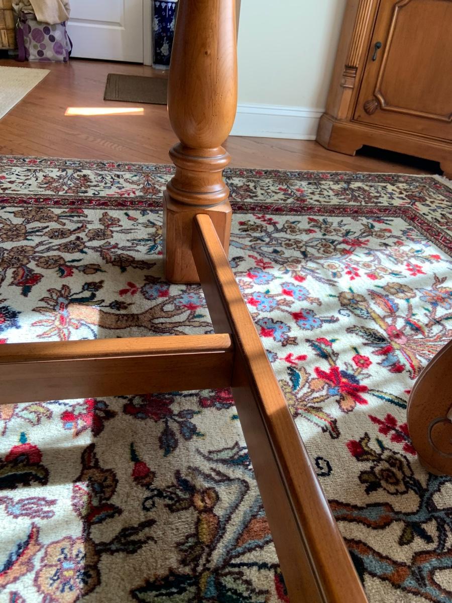 The table is 72 x 42 x 31 and has 2 leafs at each end. Each leaf measures 18" each. The Charis are 22 x 24 x 34" Please see all pictures as they are the best representation of the items. The pictures show condition, measurements if taken, and what is included in the lot. Due to the large amount that we photograph and the time frame, we are not always able to take measurements. All items unless noted, are pre-owned and have been used. If you purchased furniture, you must bring help. We do not allow one person to carry large furniture out on their own. Bring help, tools and a truck for the safety of our client’s homes, and your personal safety. Any damages that result to the property including walls, and floors due to moving of the furniture will be charged to the buyer. Company policy. Thank you.