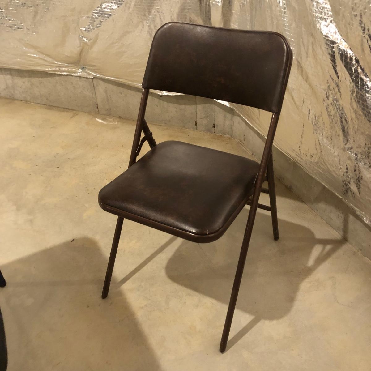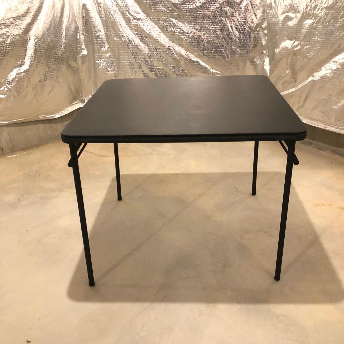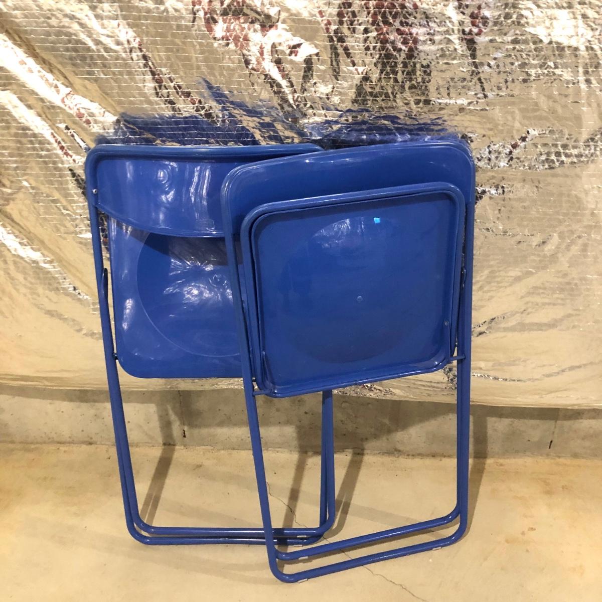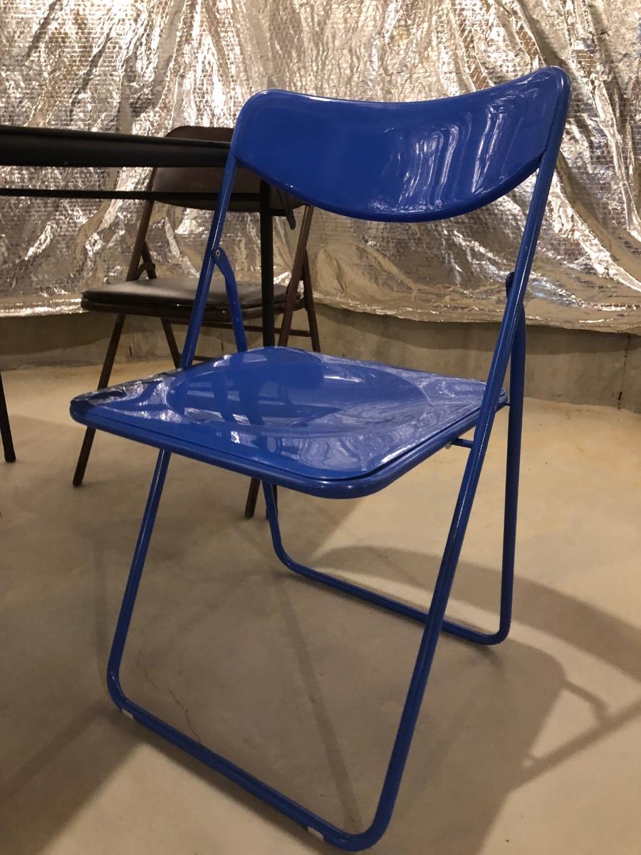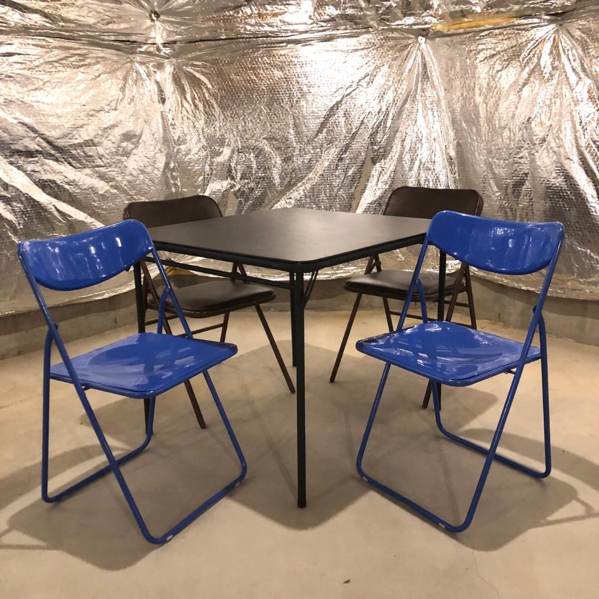 LOT 29M: Cosco Folding Card Table, 2 Blue Ikea Chairs & 2 Folding Metal Chairs