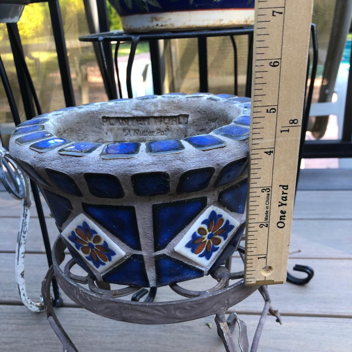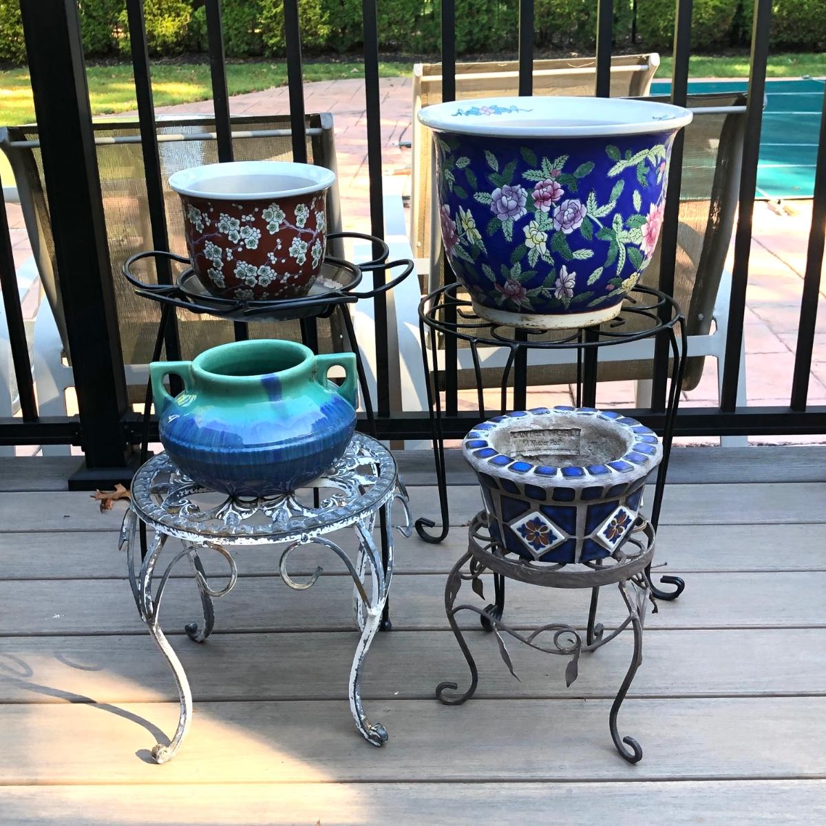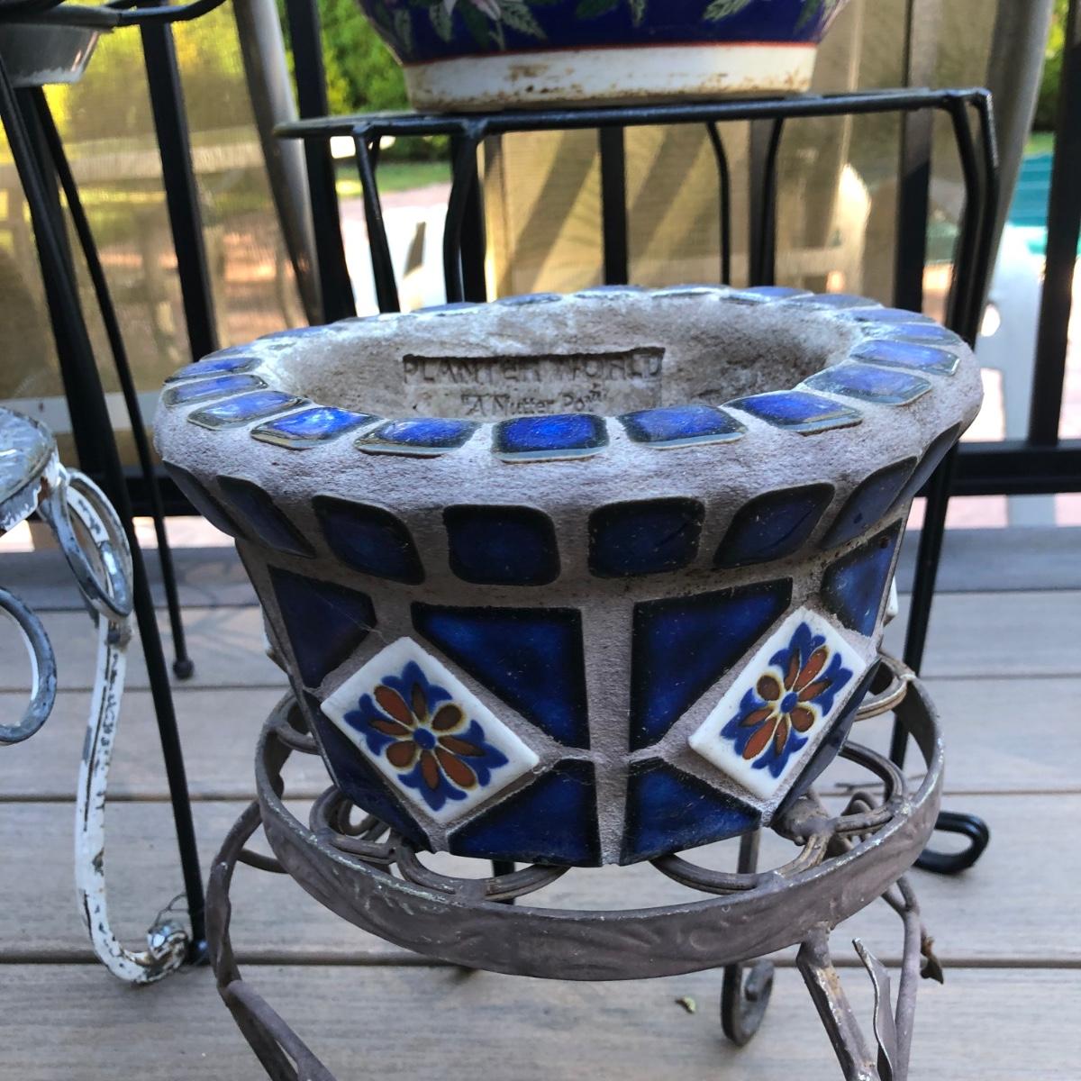 LOT 37M: Plant Stands & Planters - "A Nutter Pot" Mosaic Pot by Planter World, Chinese Fish Bowl Planter & More