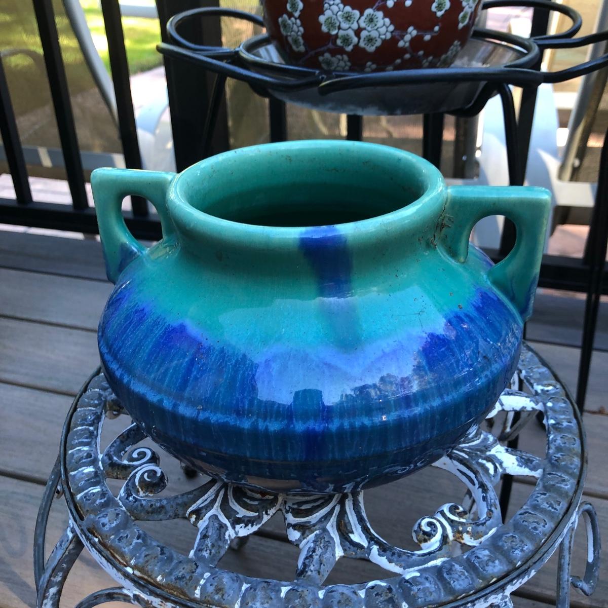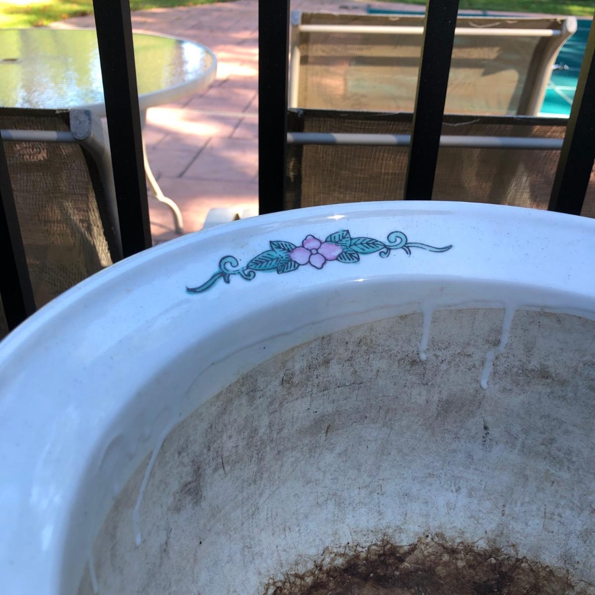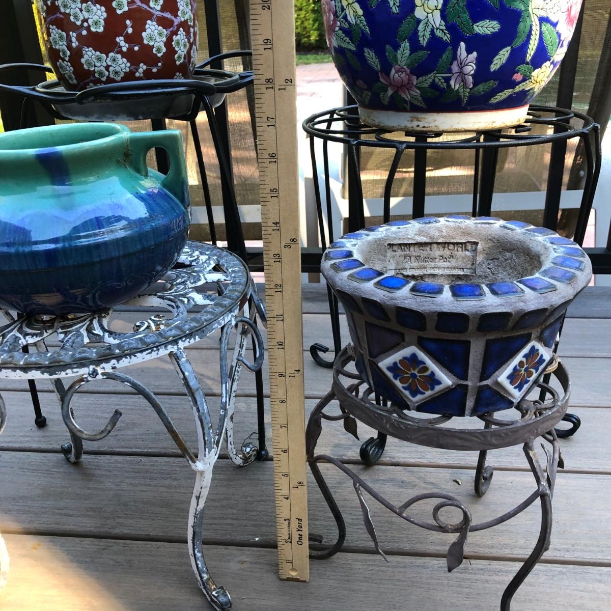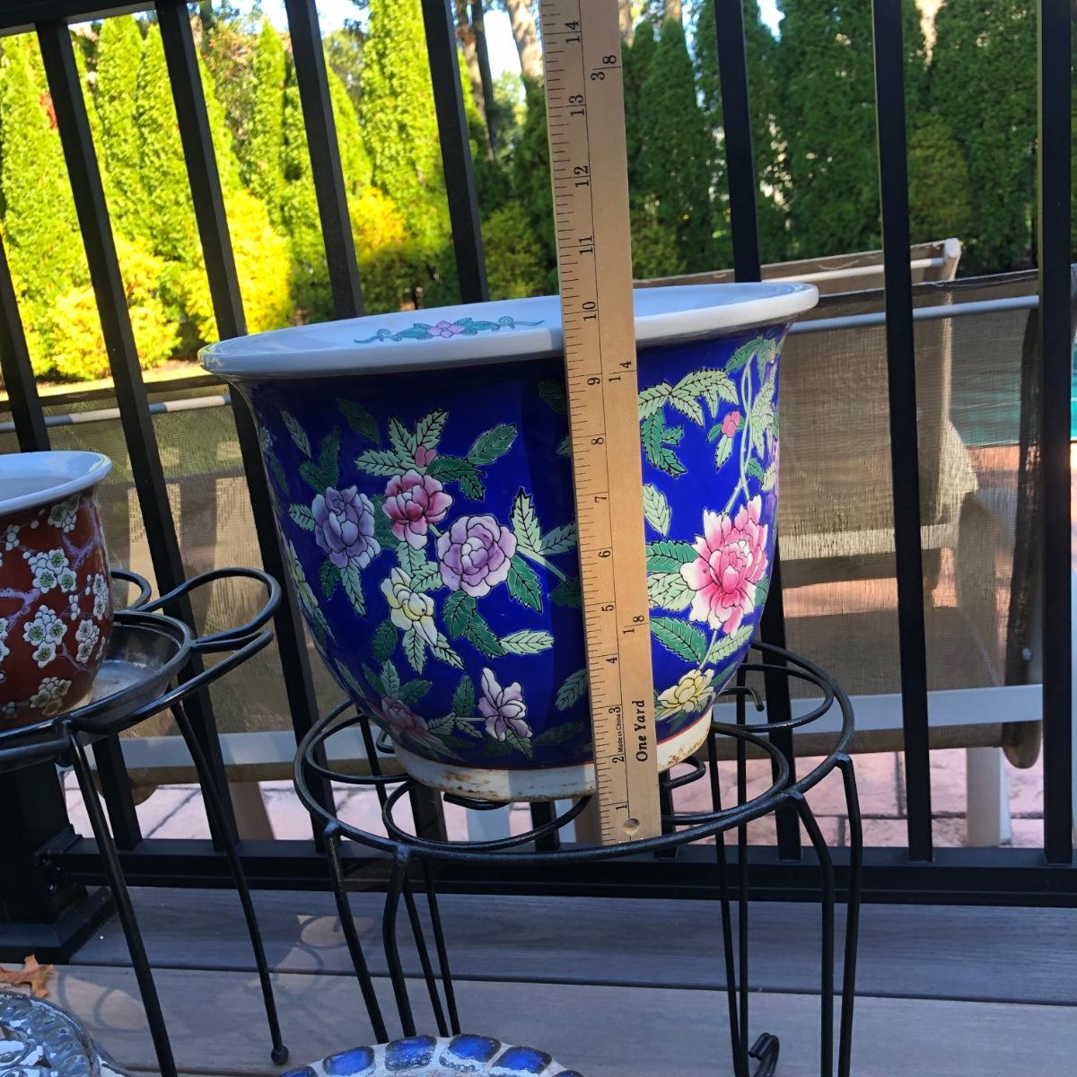 LOT 37M: Plant Stands & Planters - "A Nutter Pot" Mosaic Pot by Planter World, Chinese Fish Bowl Planter & More