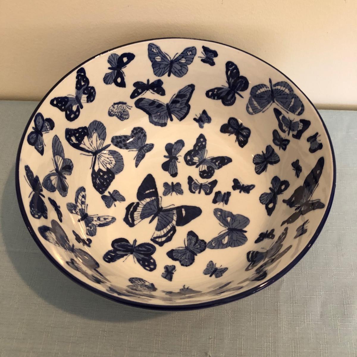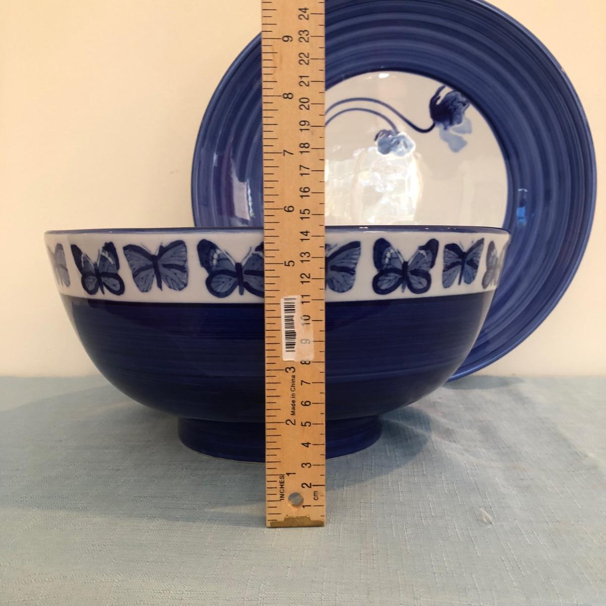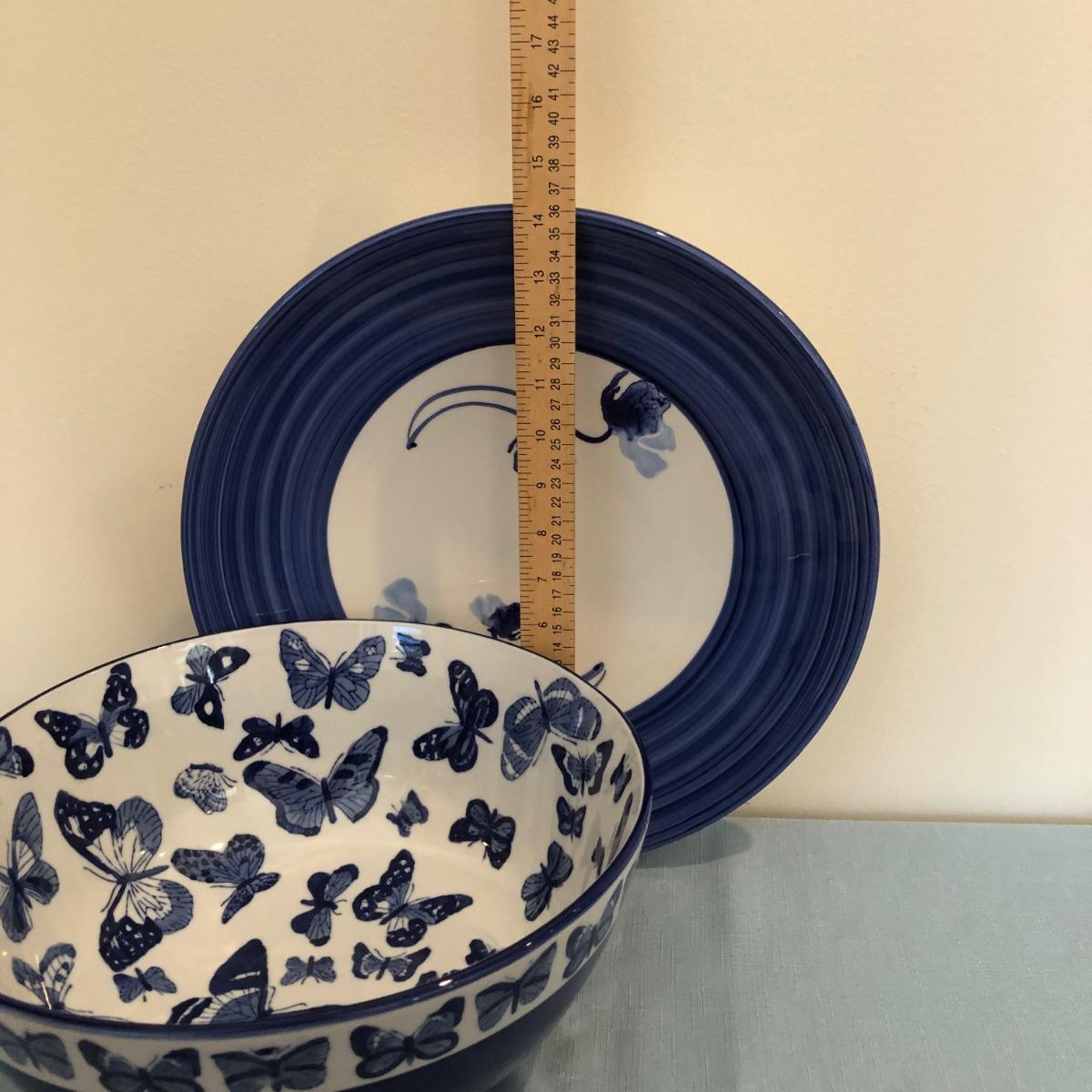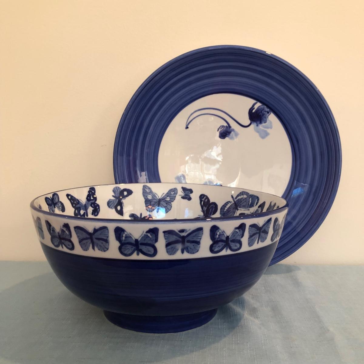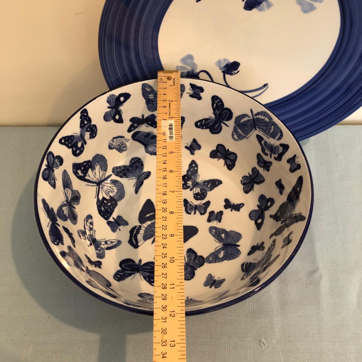 LOT 53M: Pier 1 Imports Poppies Plate & Blue Butterfly Bowl