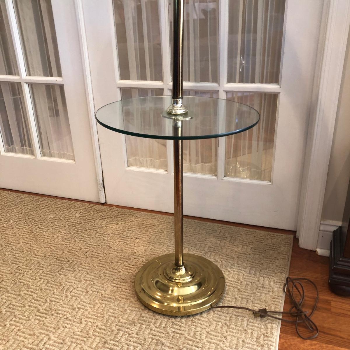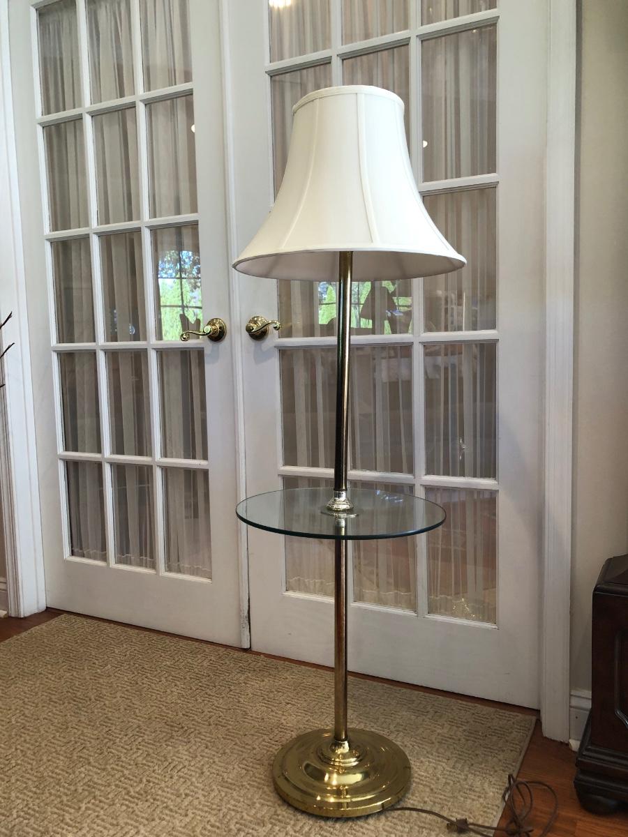 LOT 56M: Vintage Metal Floor Lamp w/ Built-in Glass Side Table (Works)