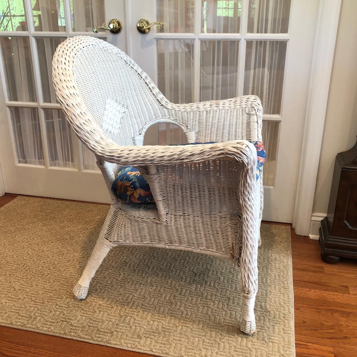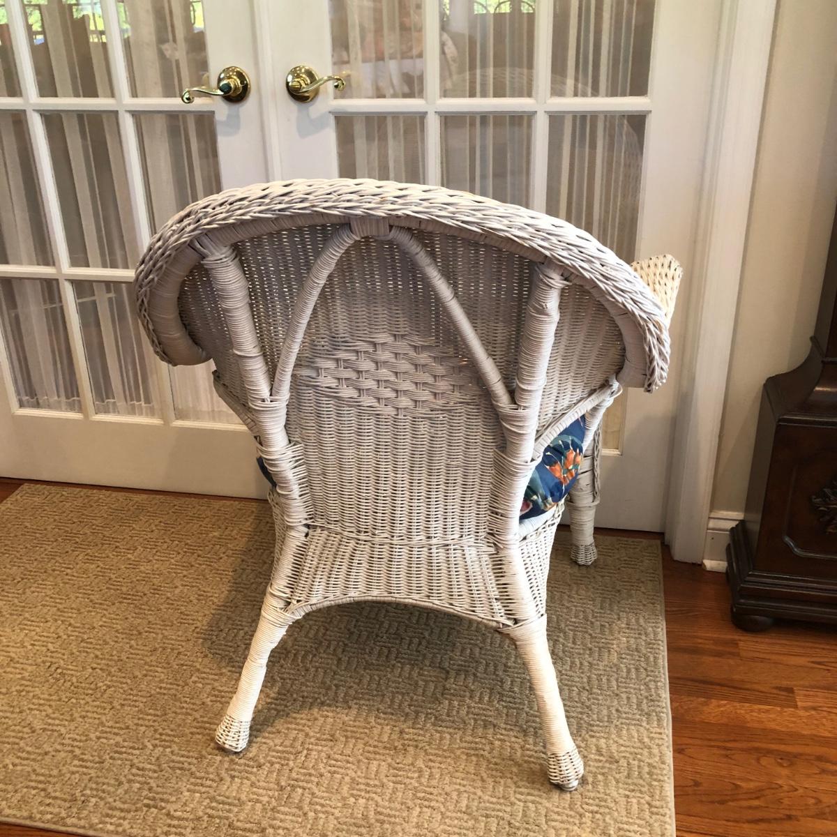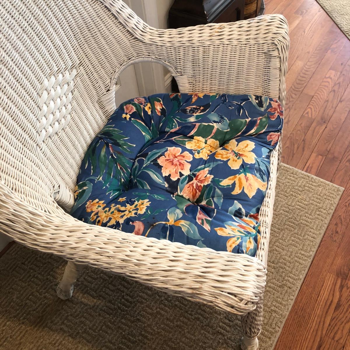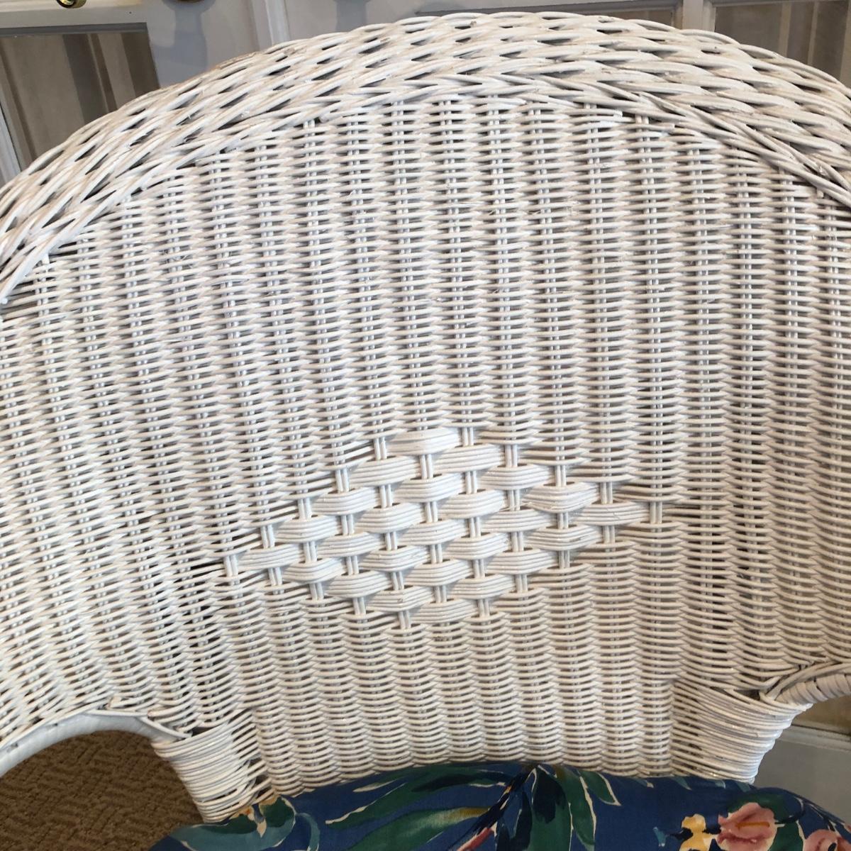 LOT 58M: White Wicker Chair w/ Floral Cushion