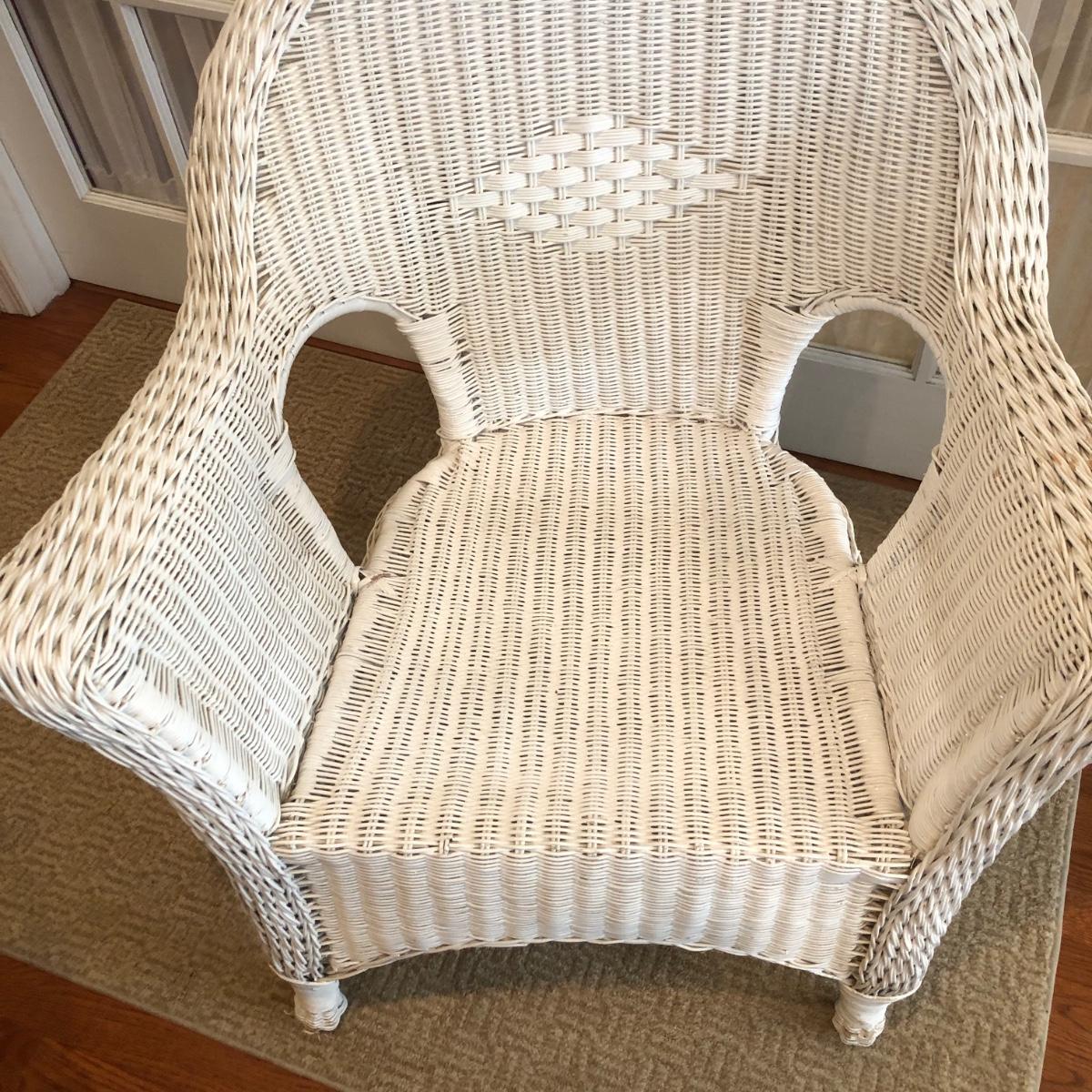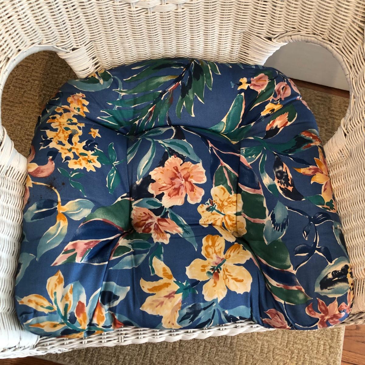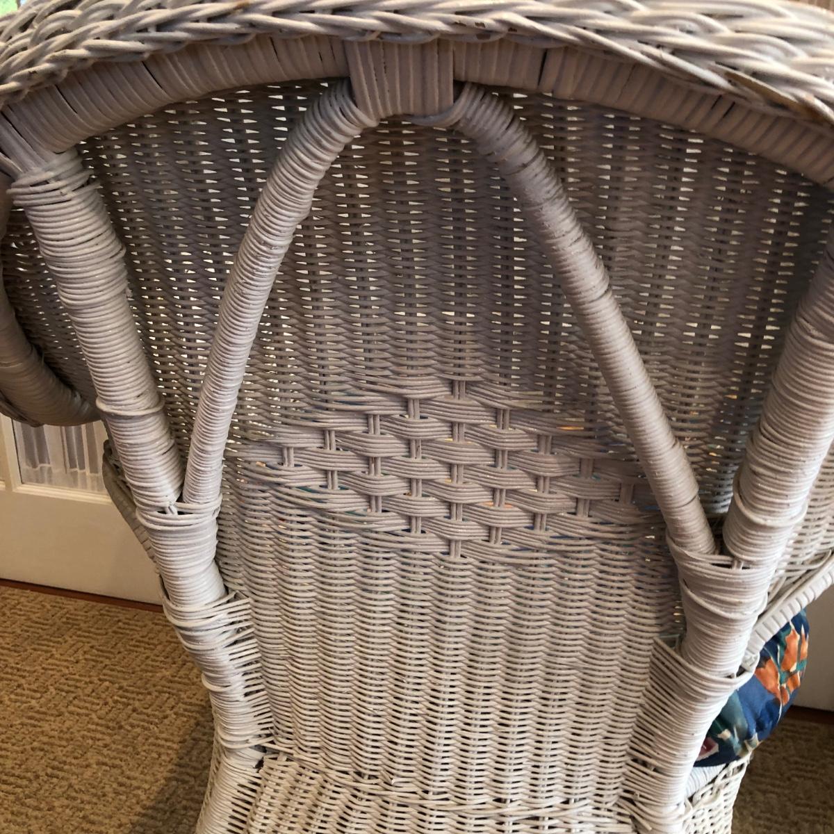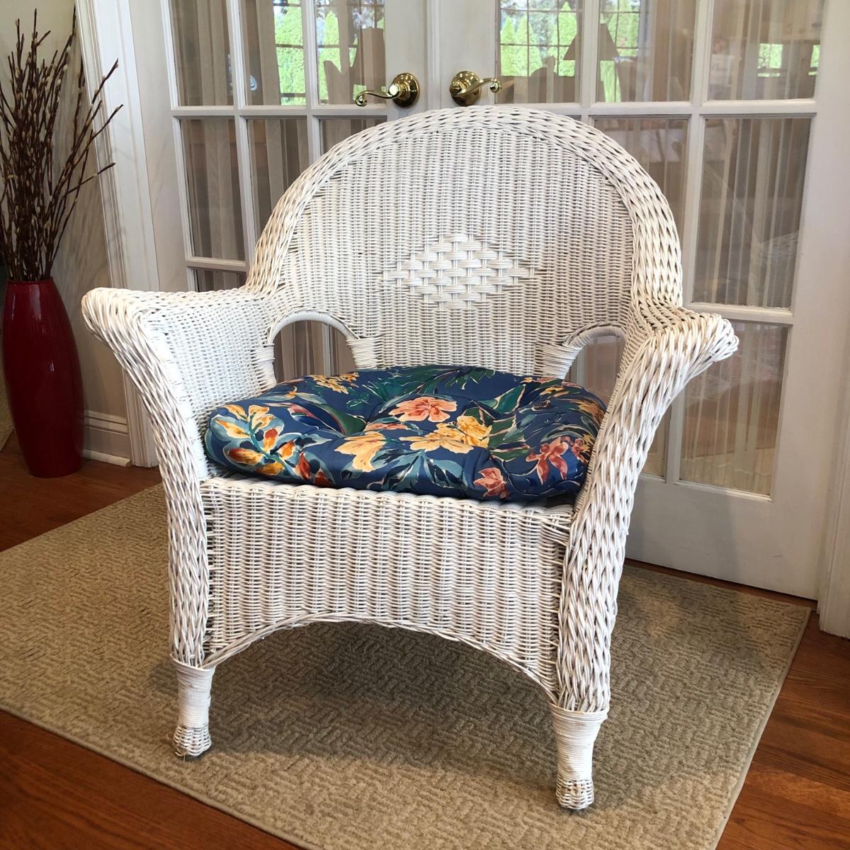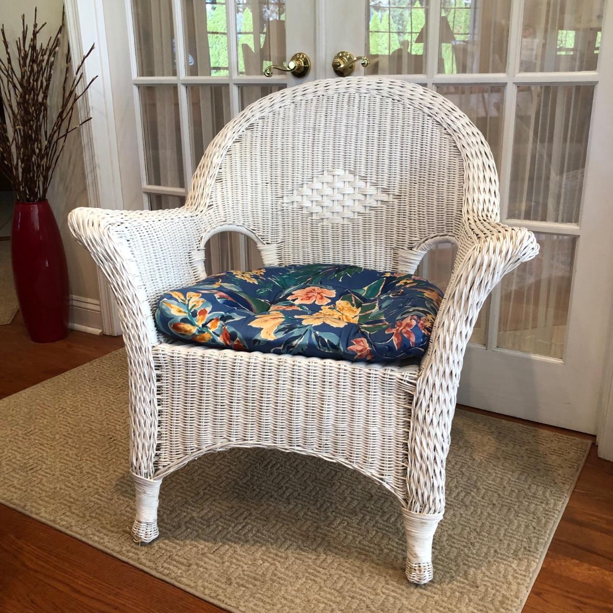 LOT 58M: White Wicker Chair w/ Floral Cushion