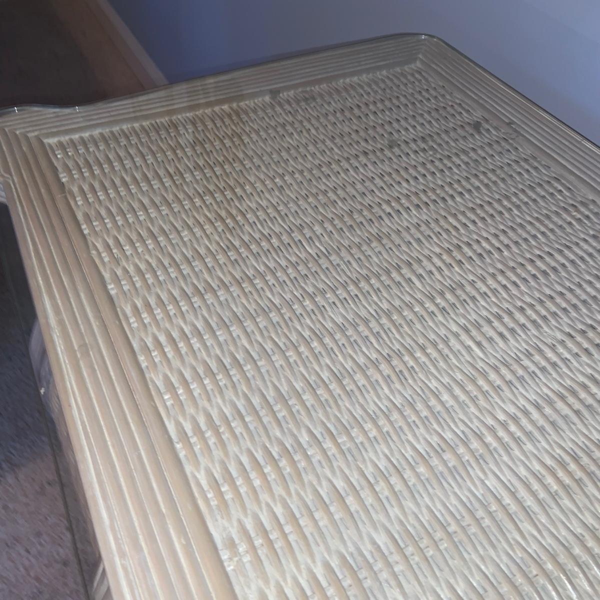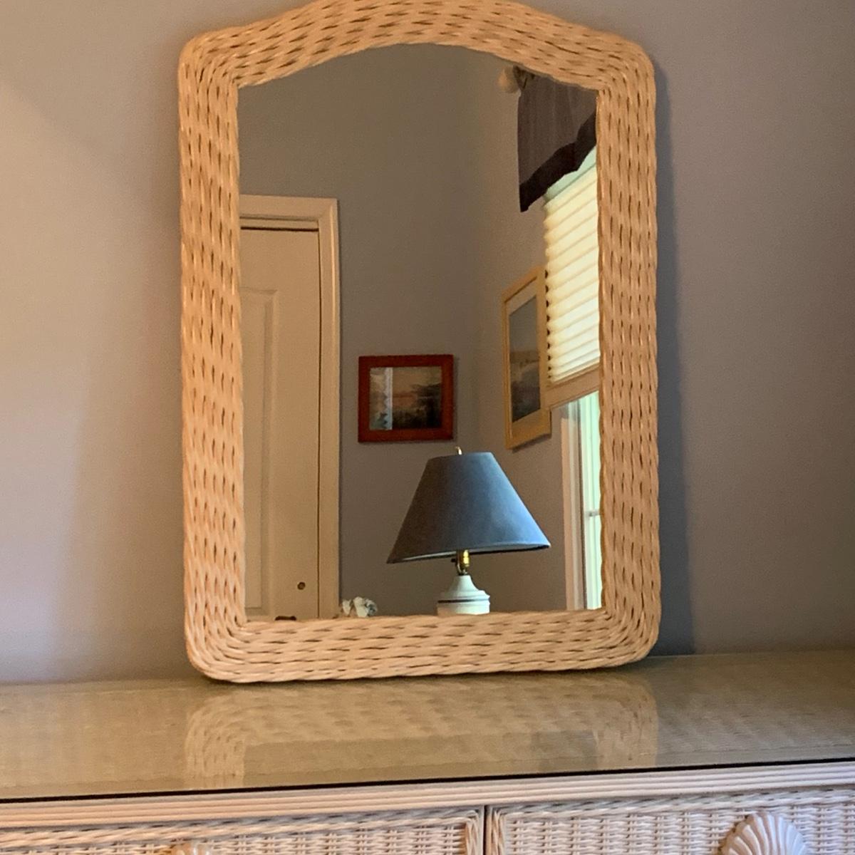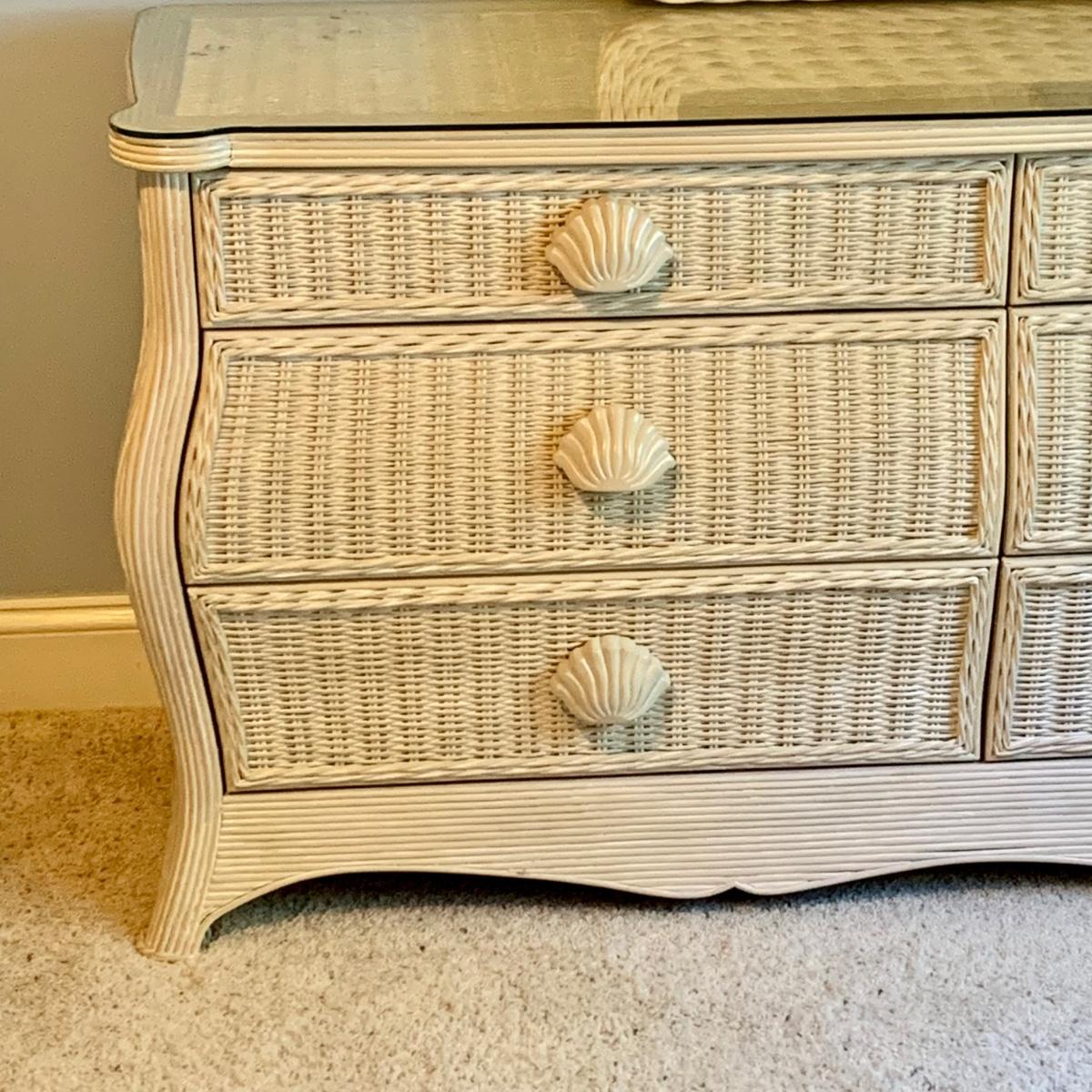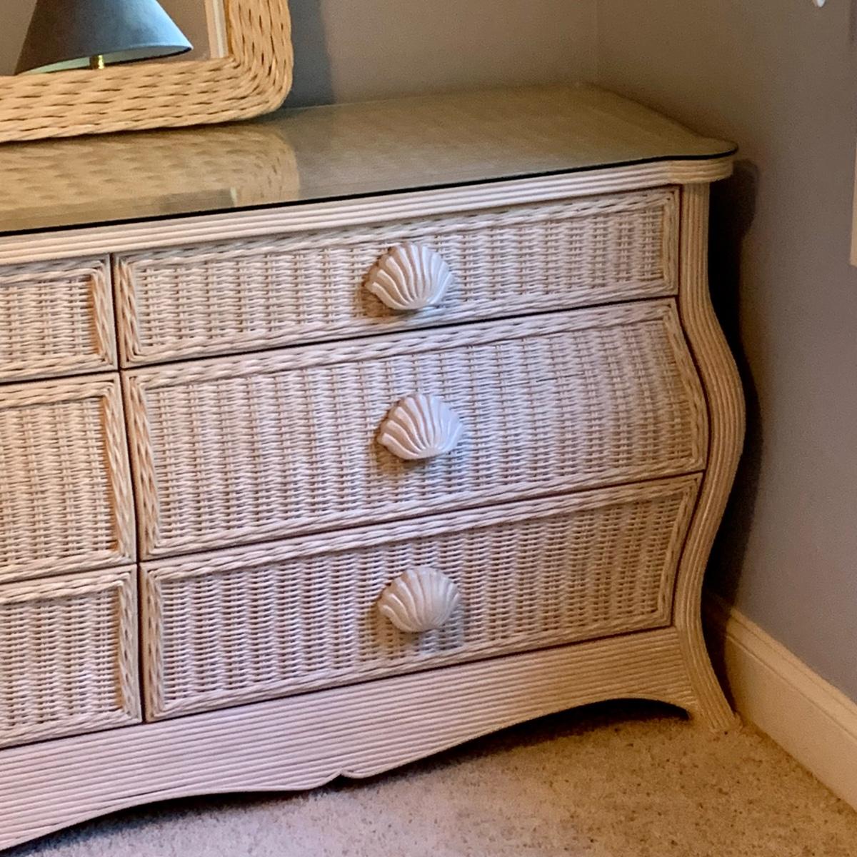 LOT:82G: Vintage White Glass Topped Wicker Dresser with Mirror