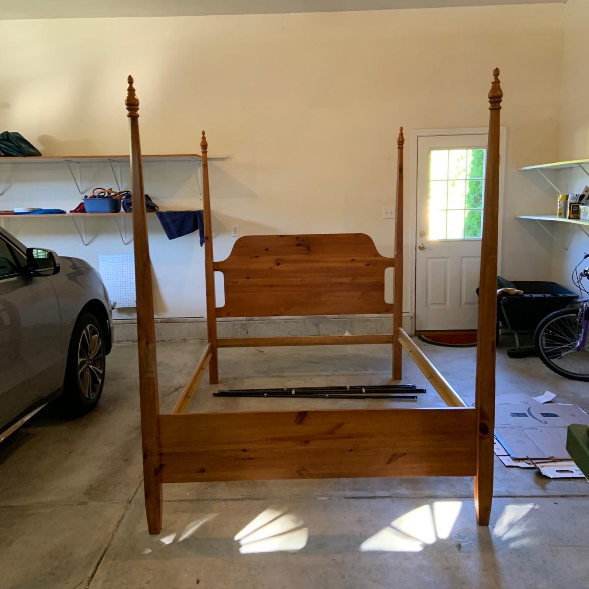 LOT:85G: Vintage Wood Pencil Four Post Bed Frame