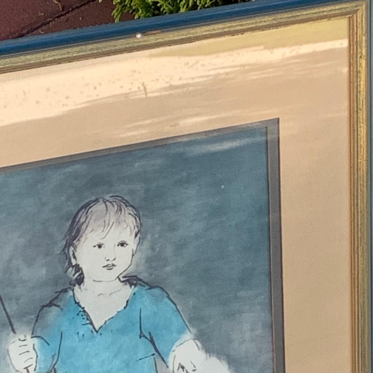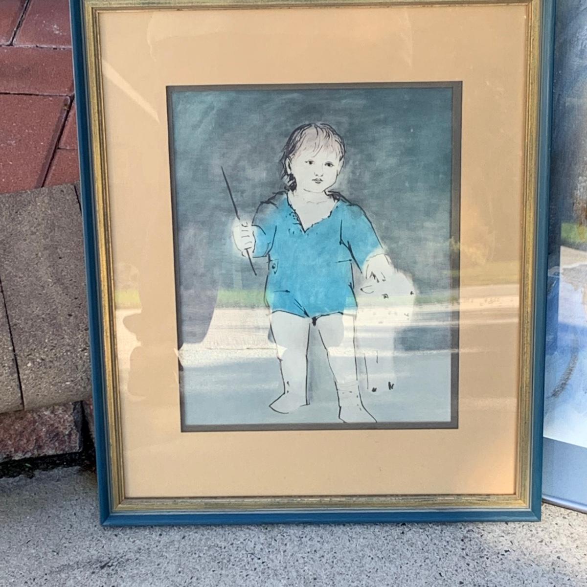 LOT:95G: Framed Wall Art-  Picasso's "Paul with Lamb" and Unsigned Portait