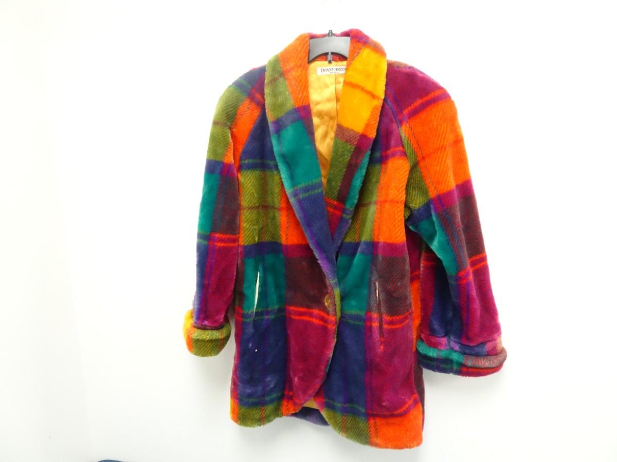 LOT 951  DONNYBROOK  LADIES PLAID WINTER COAT FAUX FUR SIZE SMALL