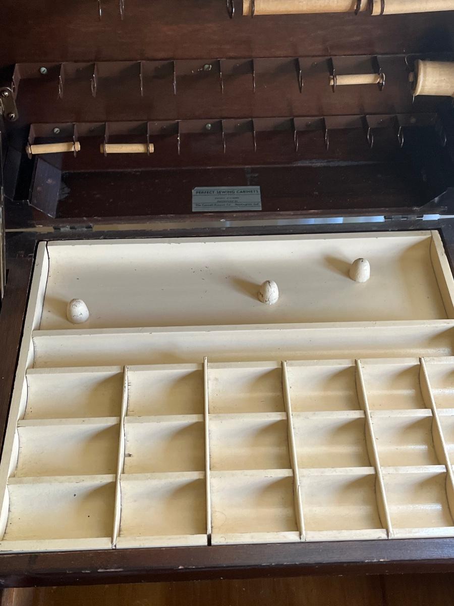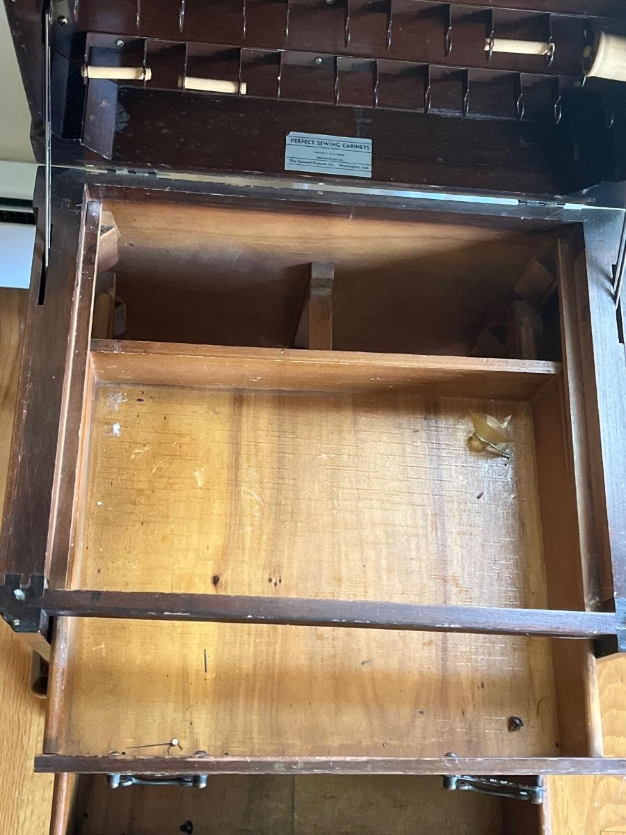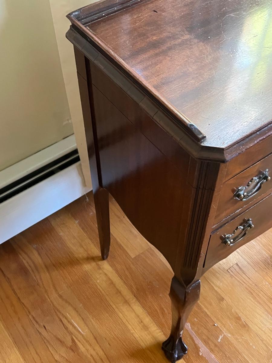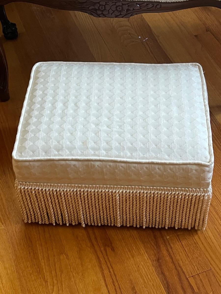 LOT 8L: Armchair, Foot Stool, Sewing Cabinet / Side Table